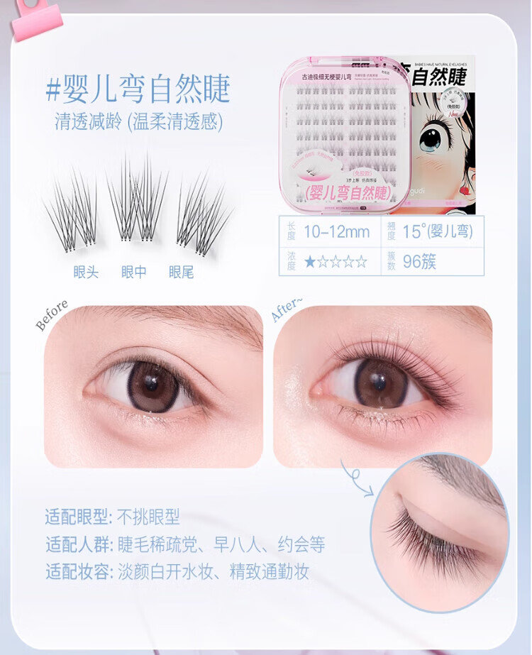 Goood96 cluster native baby curved false eyelashes for women without stems, glue-free and self-adhesive 0.07mm natural simulation without makeup can be applied