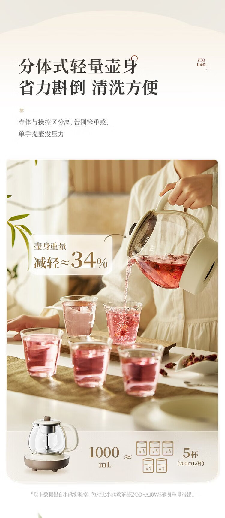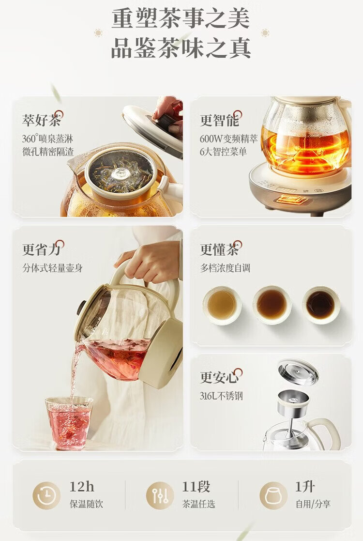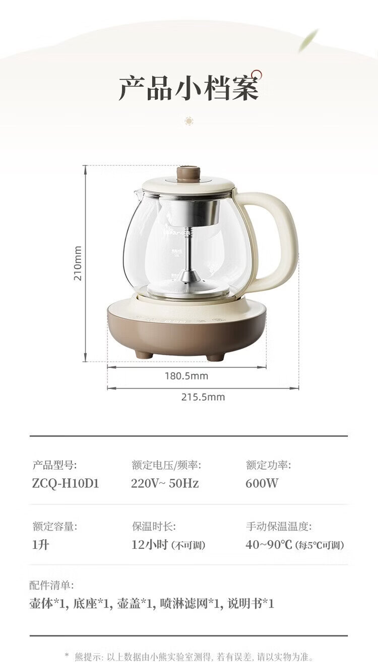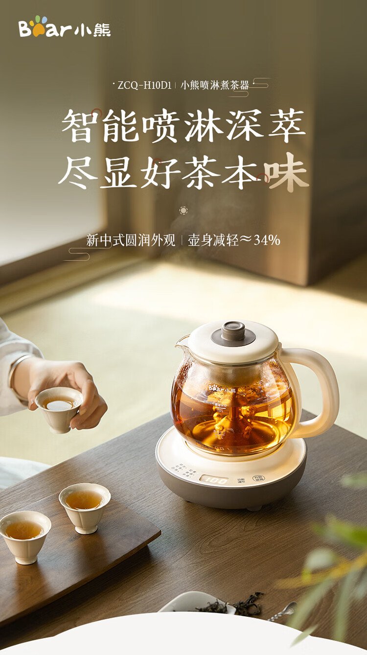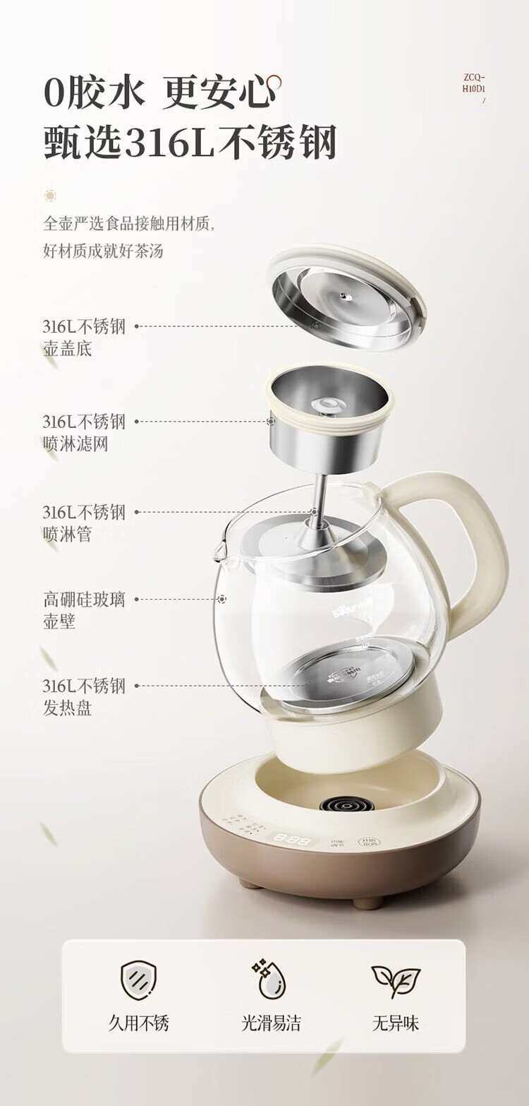 Bear tea kettle, health kettle, all-in-one tea kettle, mini tea steamer, 316L spray stainless steel kettle, black tea tea set, 1 liter ZCQ-H10D1