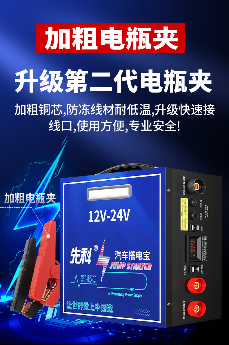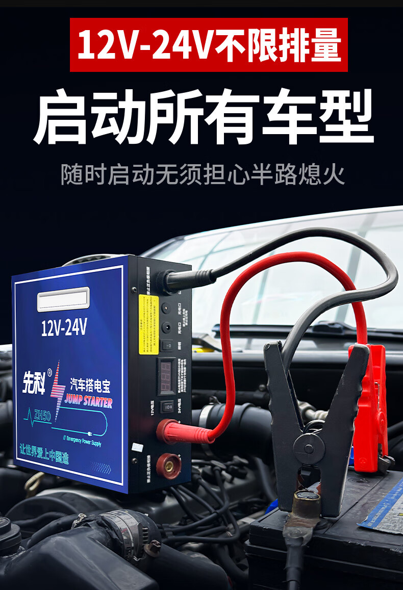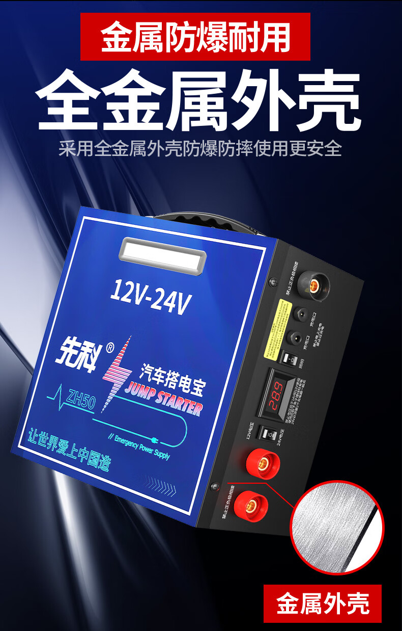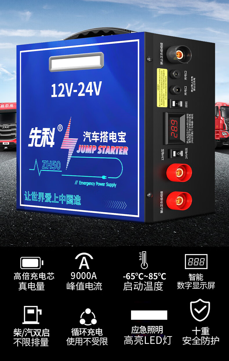 Xianke ZH50 car emergency starting power supply 12V24V general car truck truck heavy truck excavator universal 14-piece hard package large battery high performance strong start outdoor emergency essential