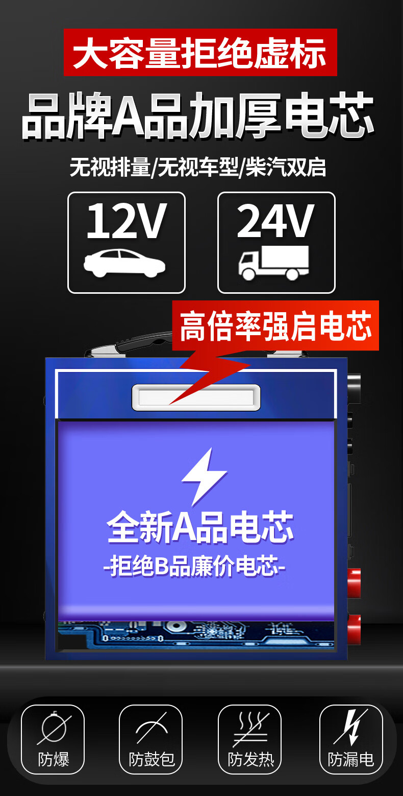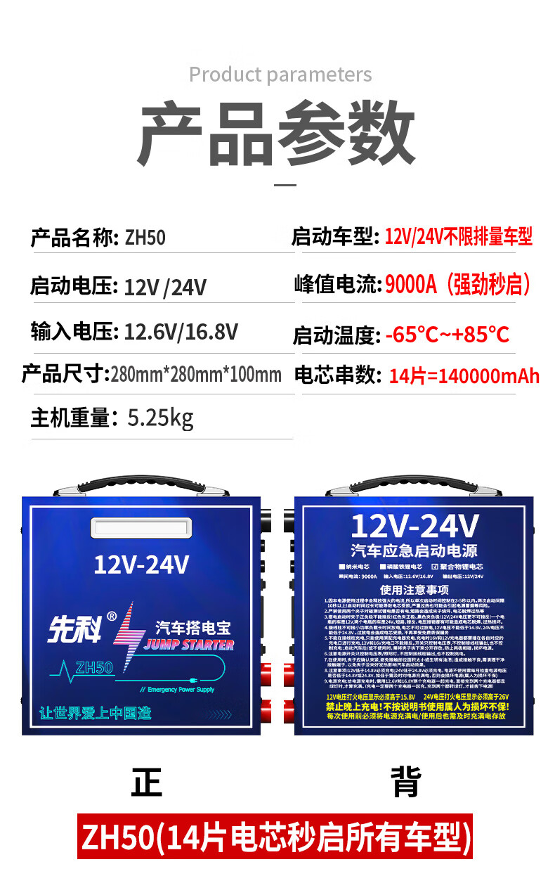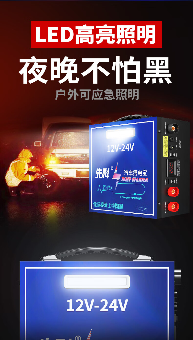 Xianke ZH50 car emergency starting power supply 12V24V general car truck truck heavy truck excavator universal 14-piece hard package large battery high performance strong start outdoor emergency essential
