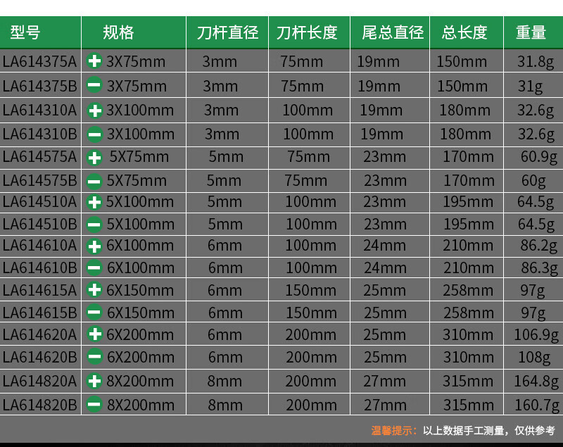 LAOA/Old A screwdriver screwdriver electrician repair set household screwdriver eleven-character 6*150MM set
