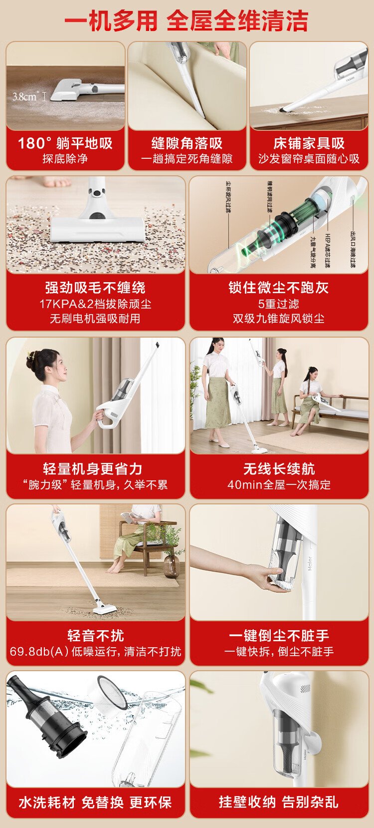 Haier Wireless Handheld Vacuum Cleaner Home Dust Removal Car Lightweight Pet Hair Suction Portable Handy Vacuum Cleaner High Power High Suction 25 Years New Product SQ2D New Year Gift
