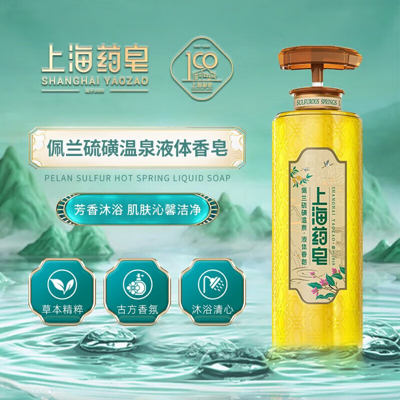 Shanghai Medicated Soap Peilan Sulfur Hot Spring Liquid Soap 620g on clearance