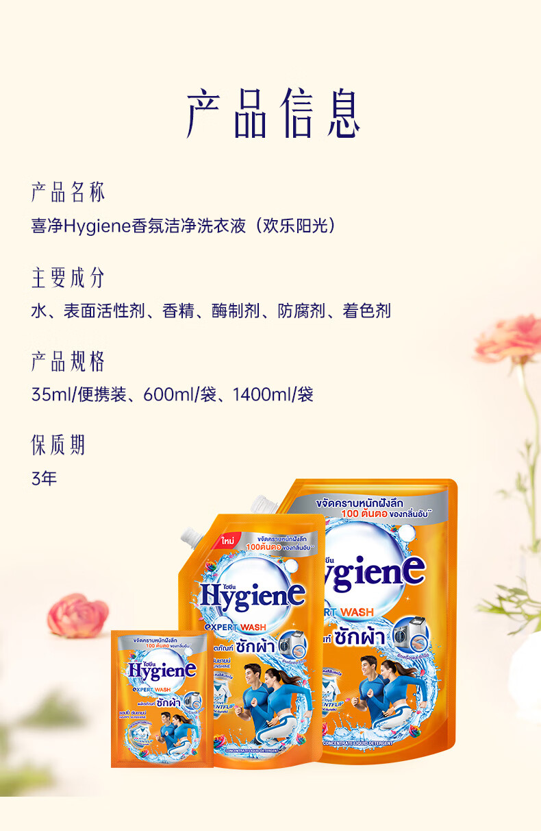 Hygiene Thai imported fragrance laundry detergent Happy Sunshine 600ml deep cleansing and long-lasting fragrance