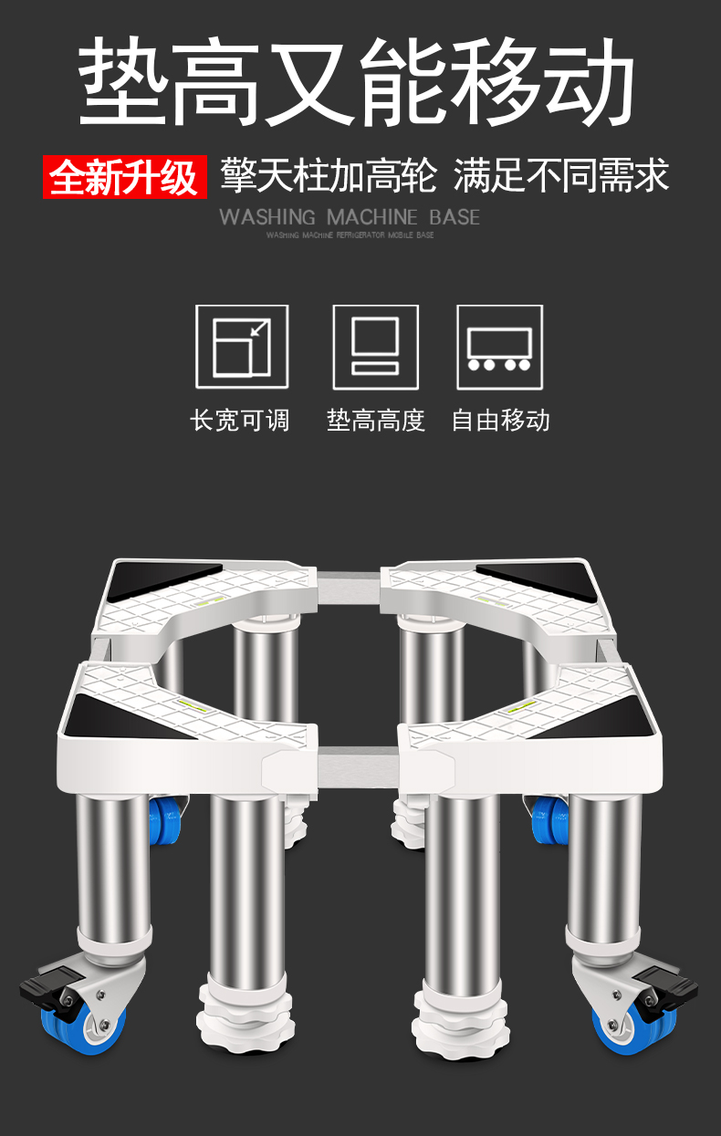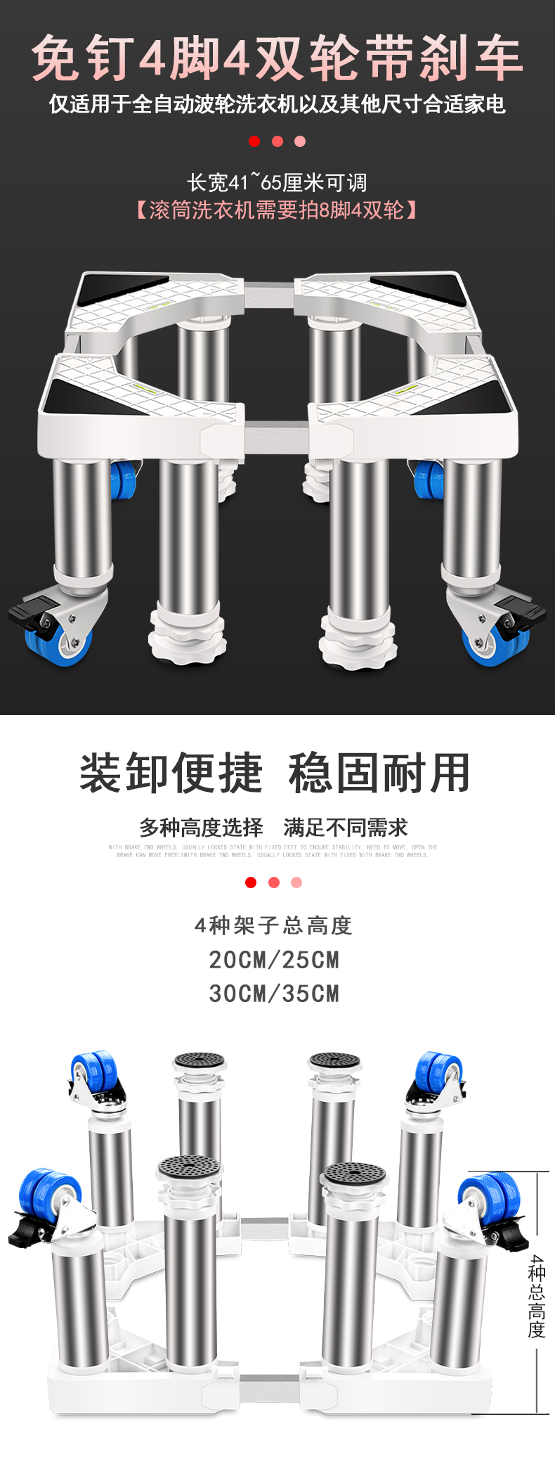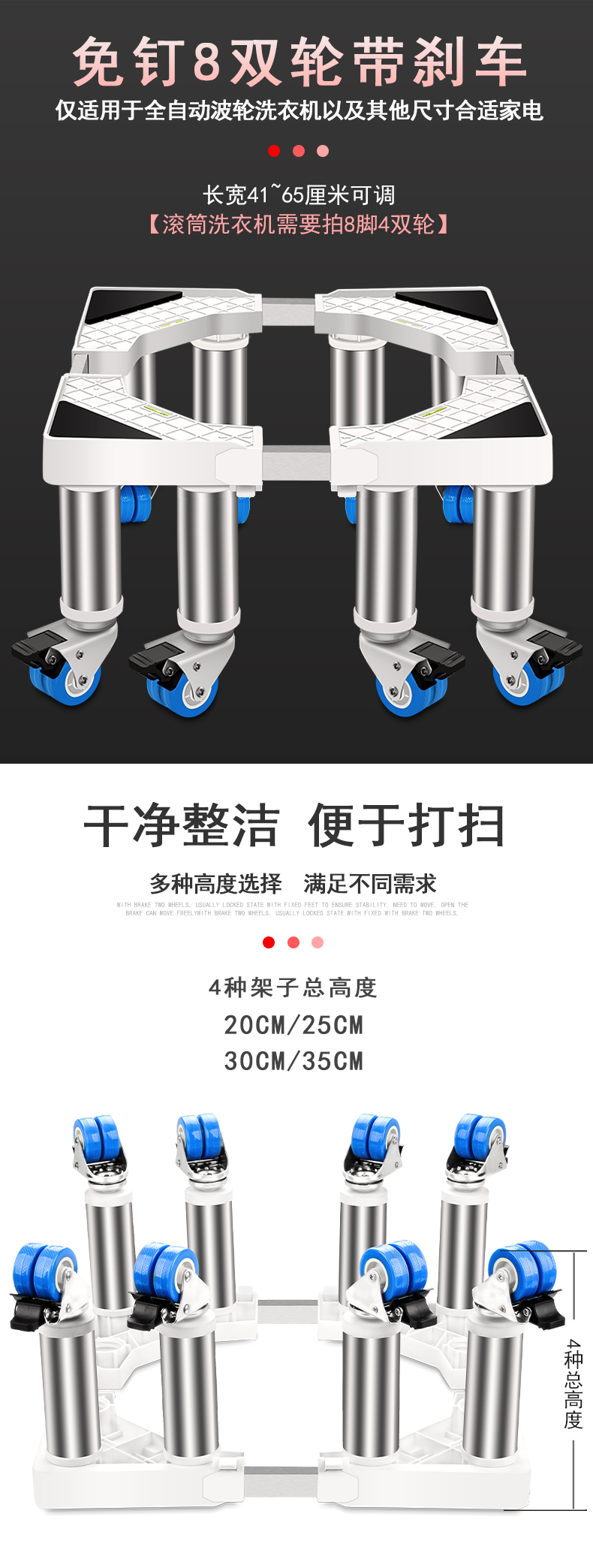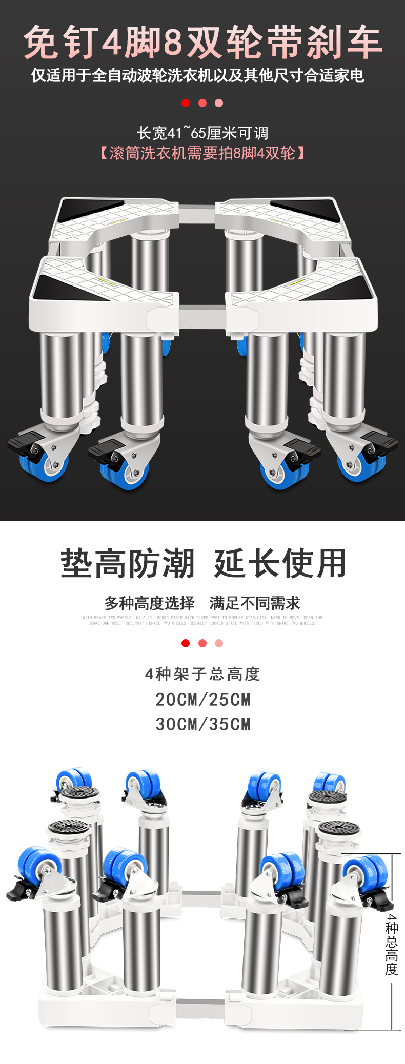 Yushang Bomei fully automatic pulsator washing machine elevated rack heightening mobile base high-foot drag rack bracket storage rack 4 feet 4 double wheels (total height 20cm) white L9+G15