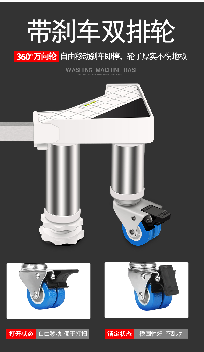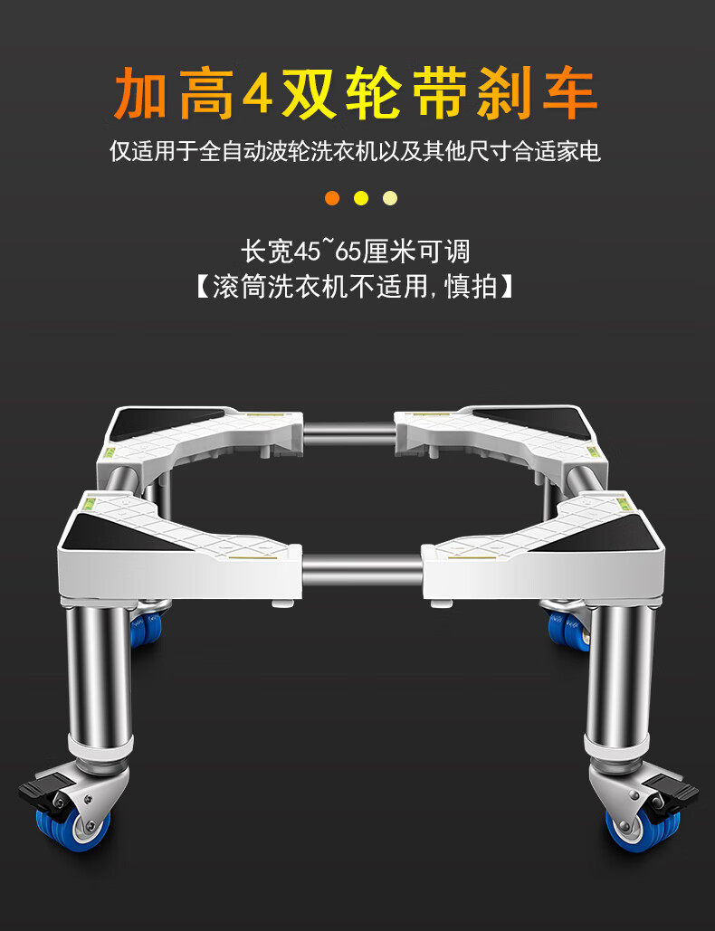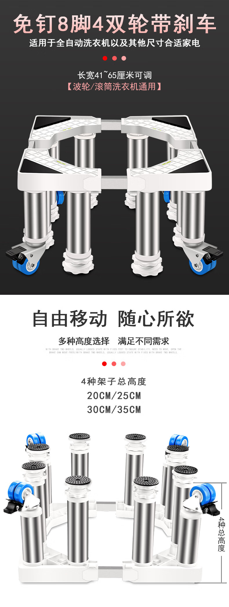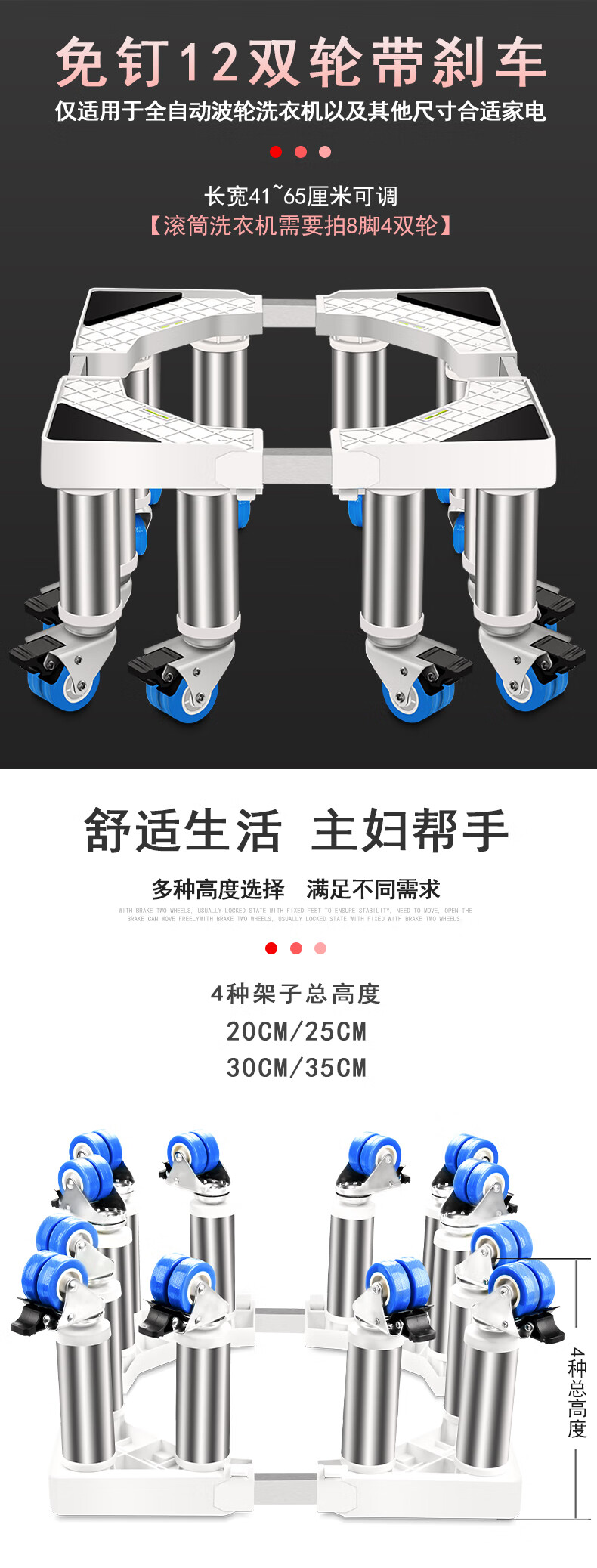 Yushang Bomei fully automatic pulsator washing machine elevated rack heightening mobile base high-foot drag rack bracket storage rack 4 feet 4 double wheels (total height 20cm) white L9+G15