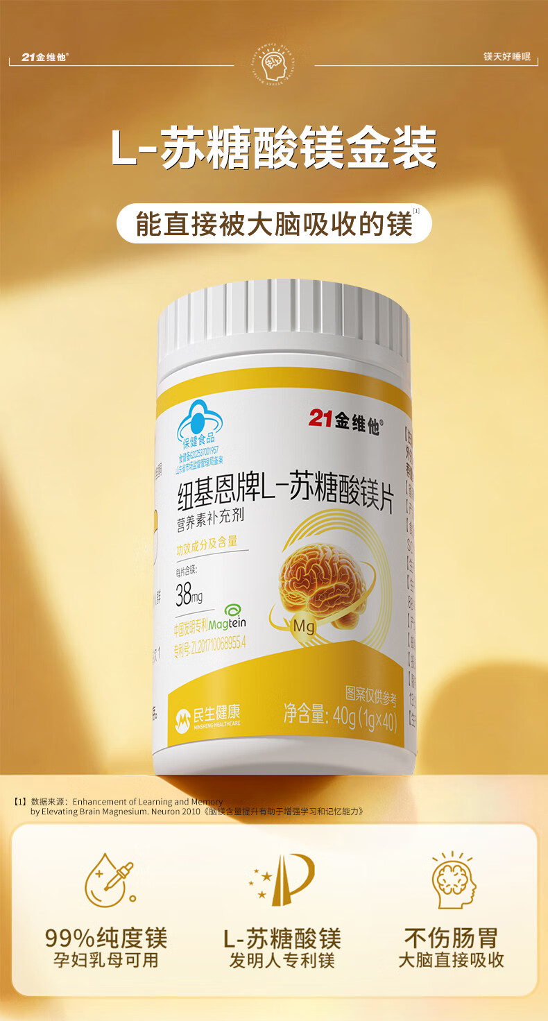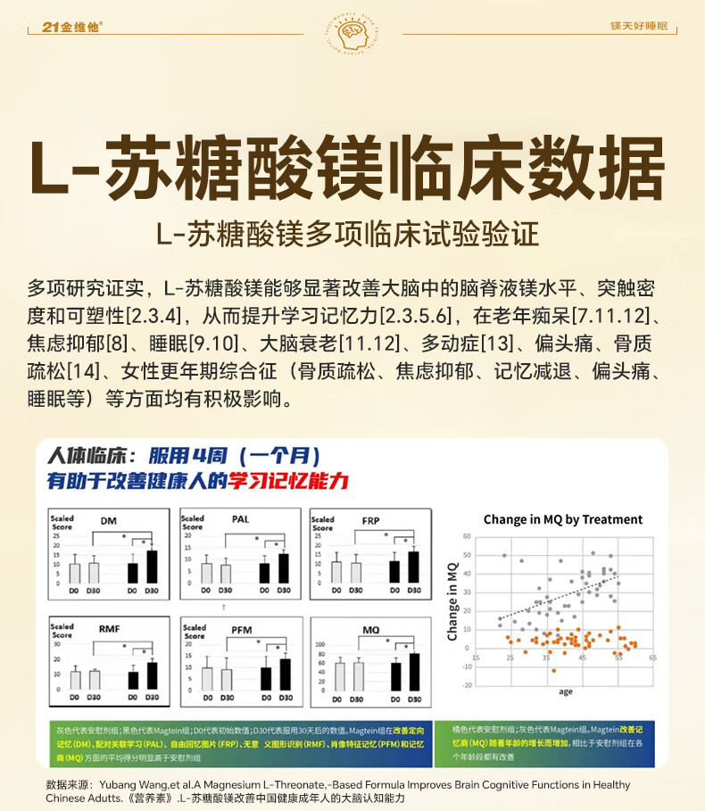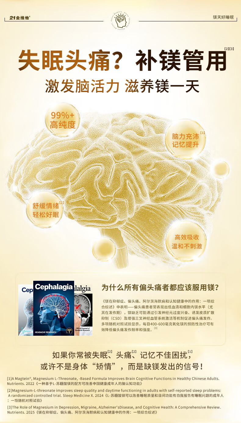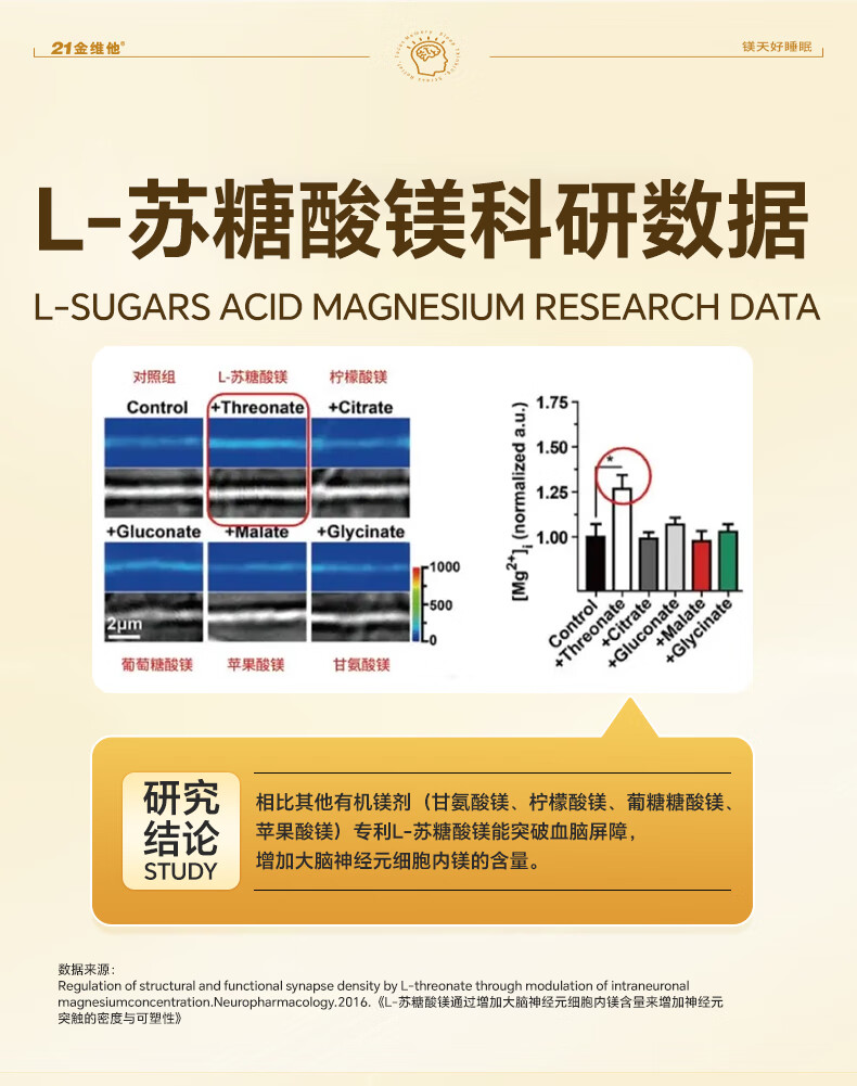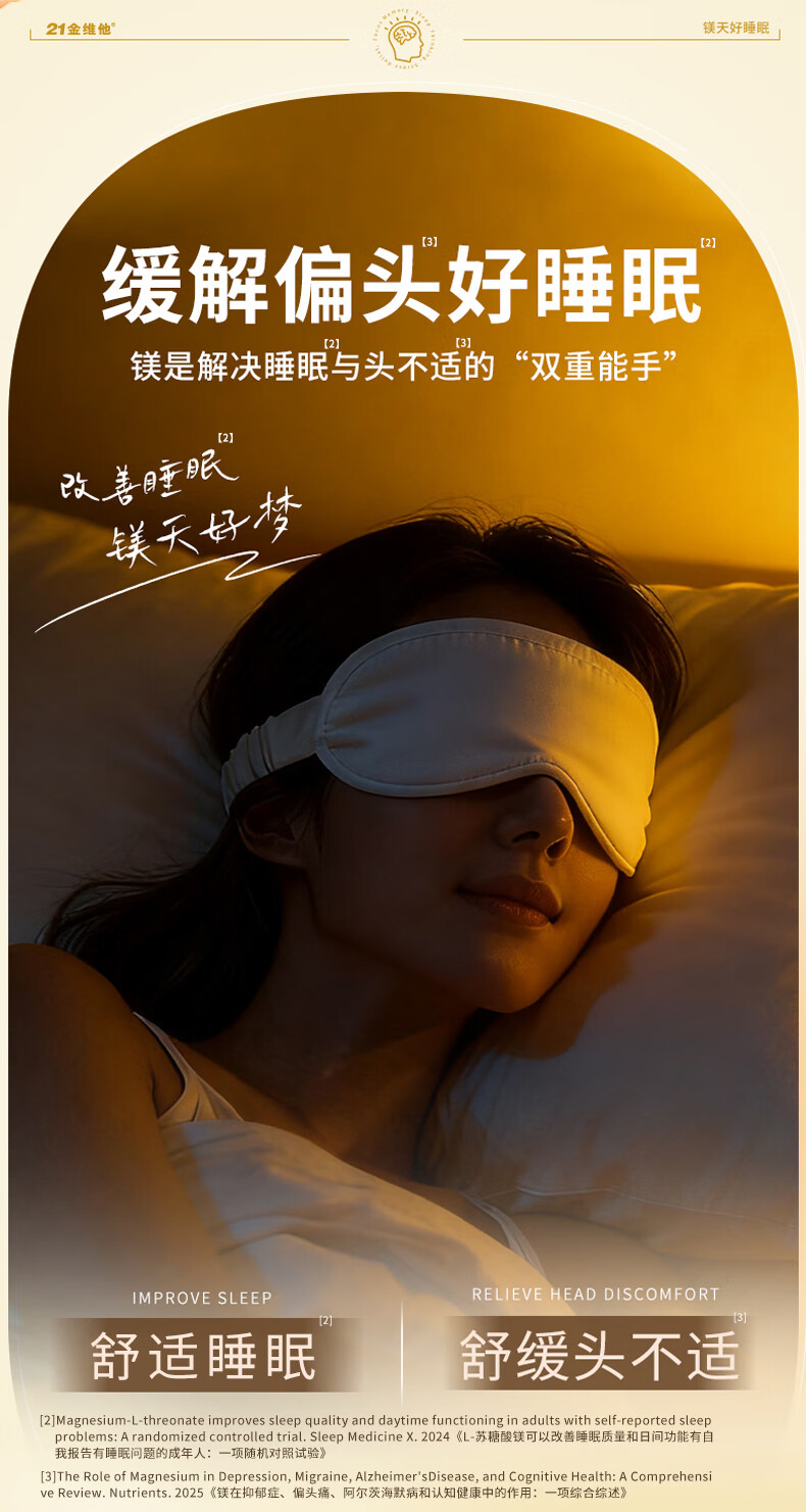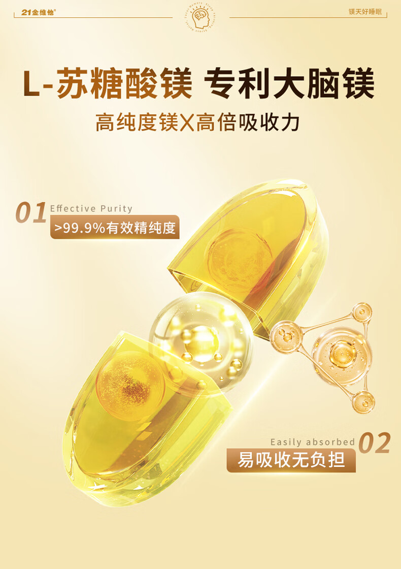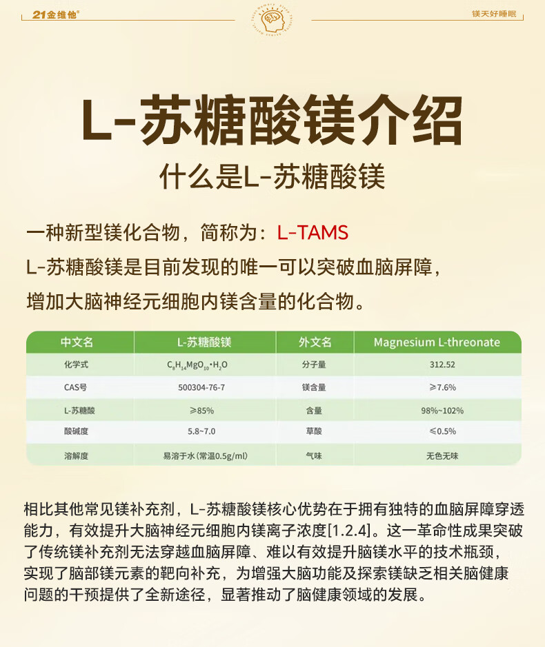 21 Golden Vitamin L-Threonate Magnesium Improves Sleep, Soothes Migraine, Patented Magnesium Supplement for Adults and Children