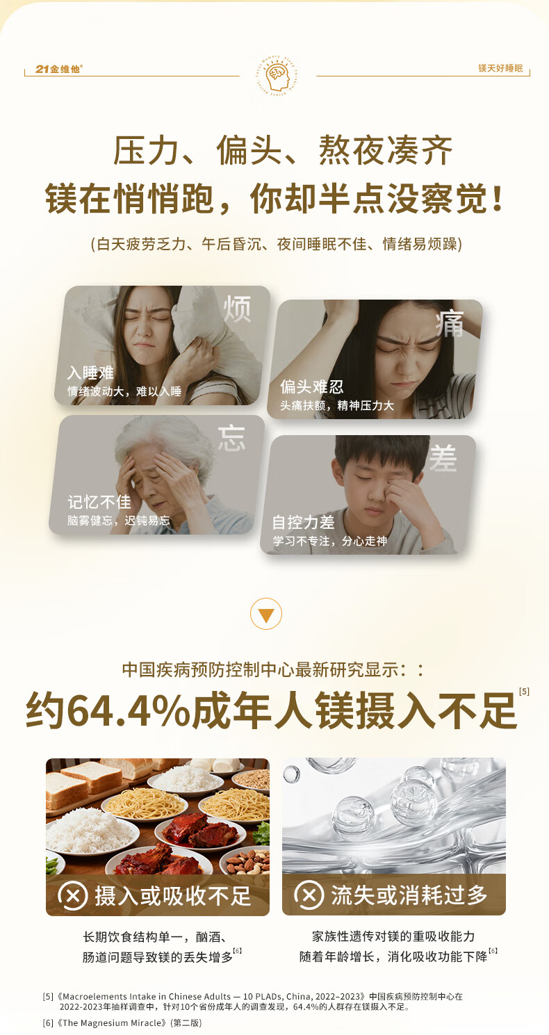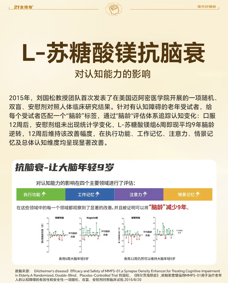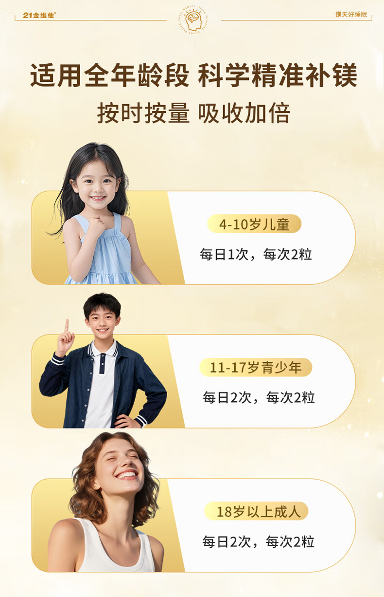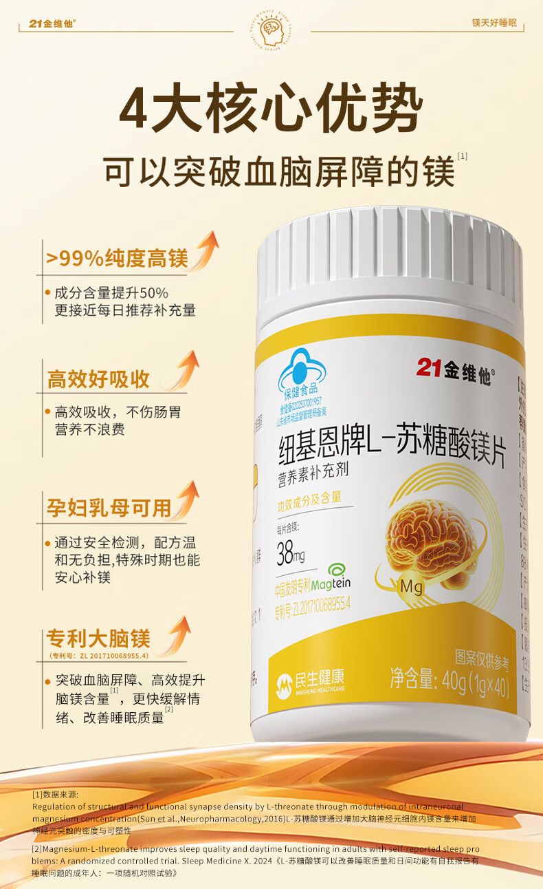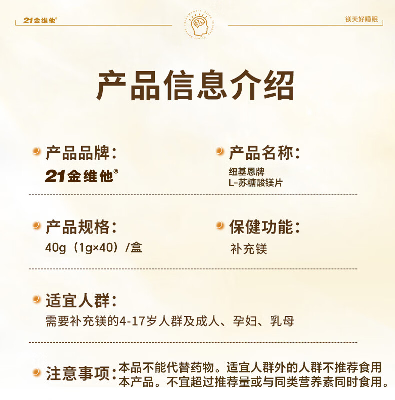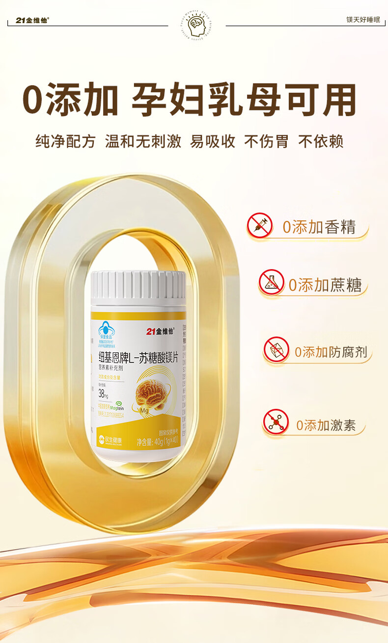 21 Golden Vitamin L-Threonate Magnesium Improves Sleep, Soothes Migraine, Patented Magnesium Supplement for Adults and Children