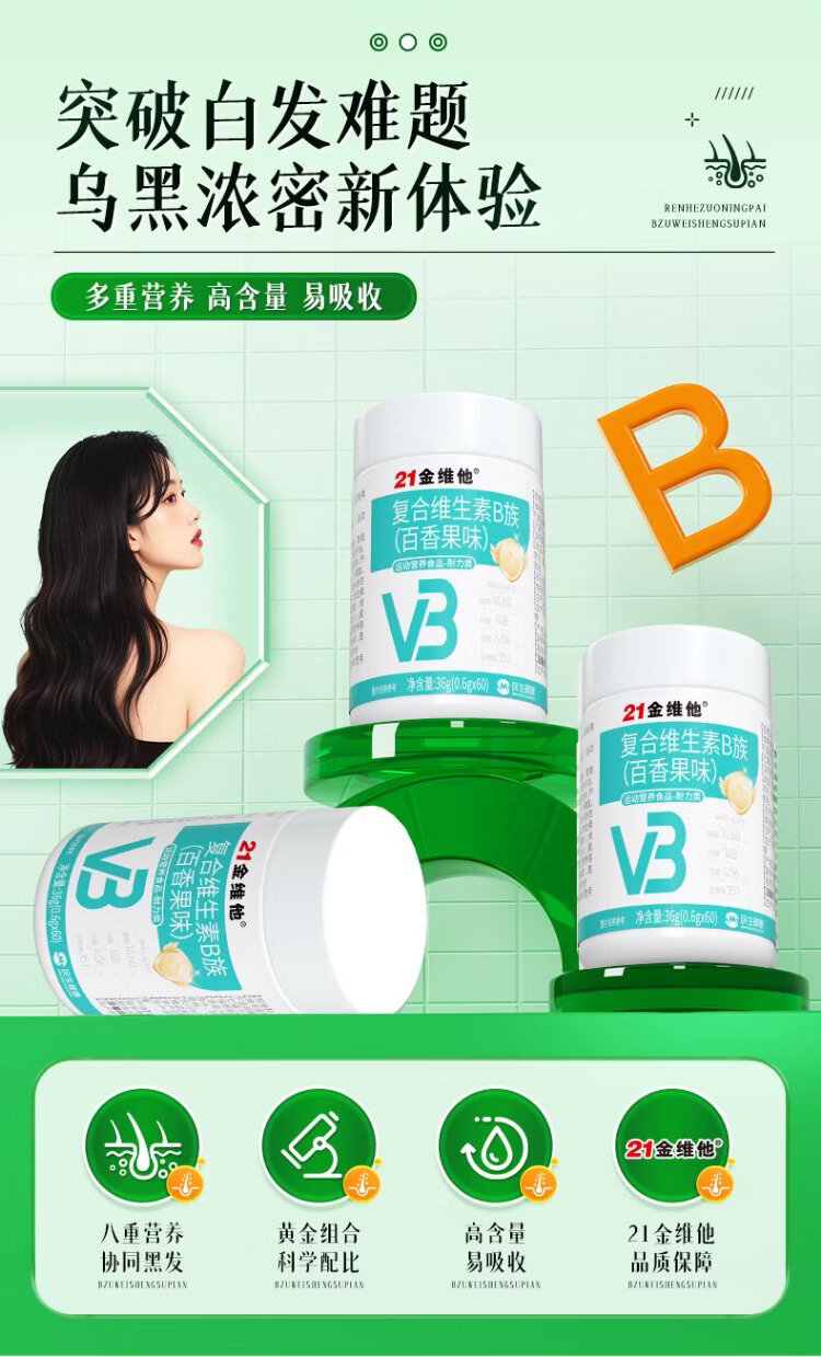 21 Gold Vitamin Biotin Vitamin H Complex Vitamin B6B7 Folic Acid Hair Whitening Hair Loss Black Hair Change 240 Tablets