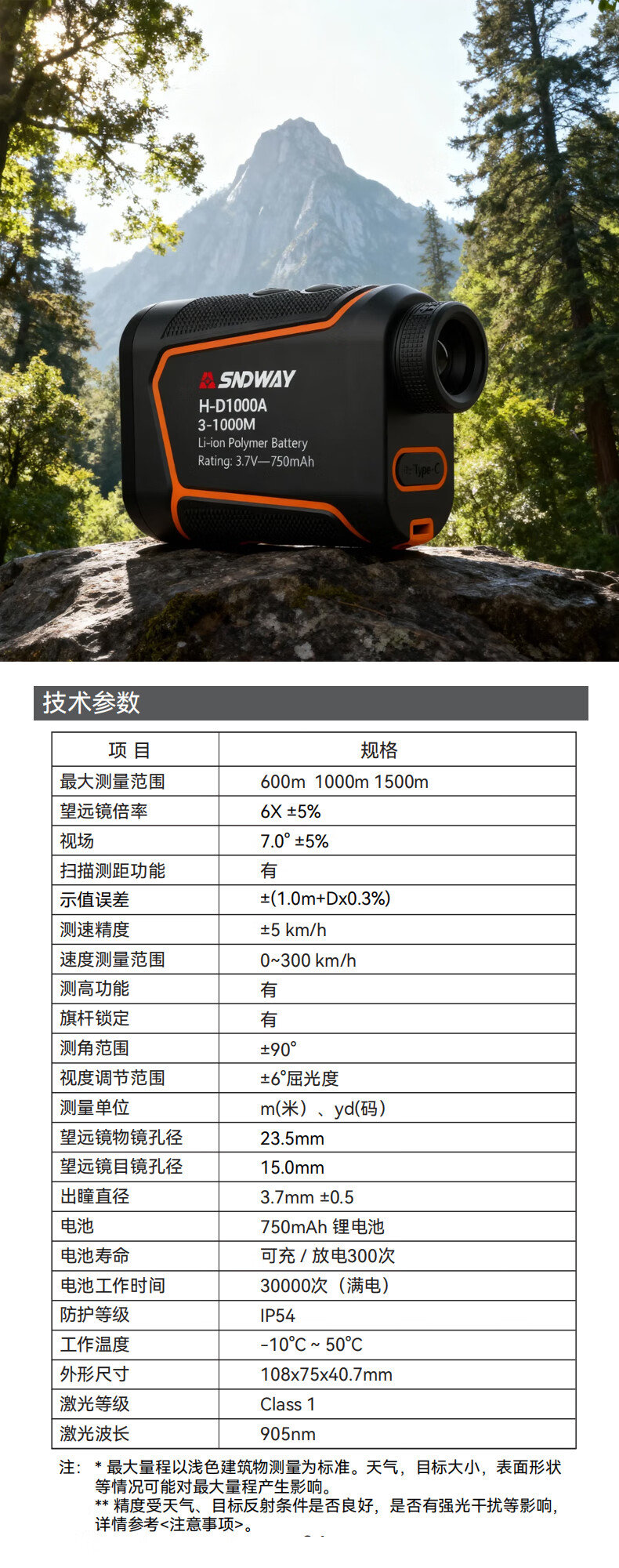 Shendawei telescope laser rangefinder outdoor high-precision electronic ruler infrared long-distance measurement H-D1000A