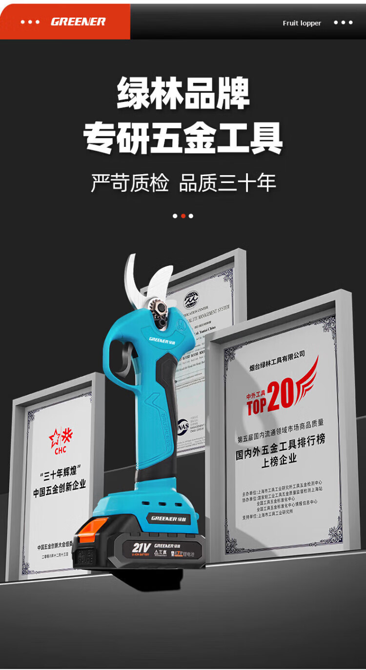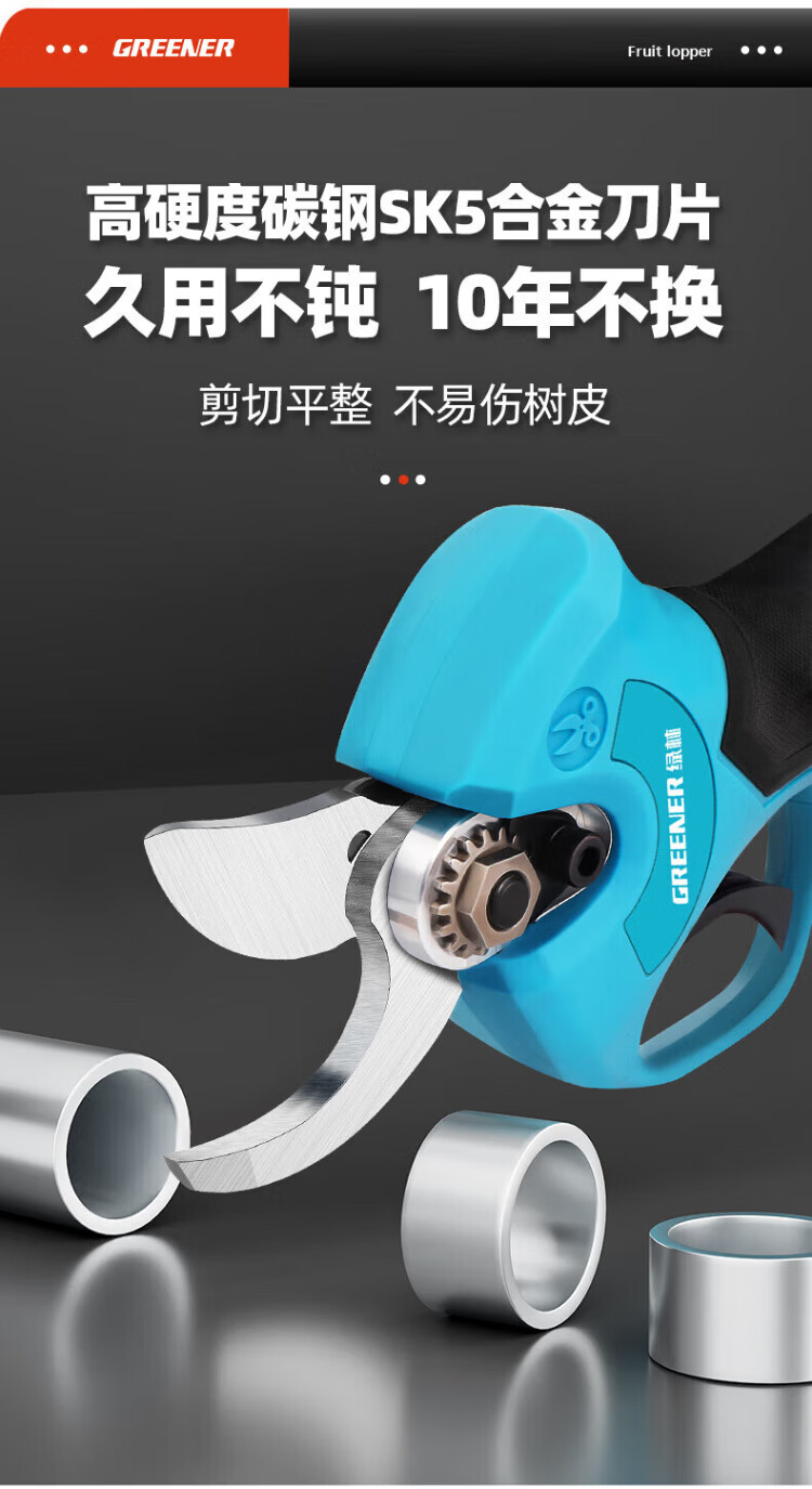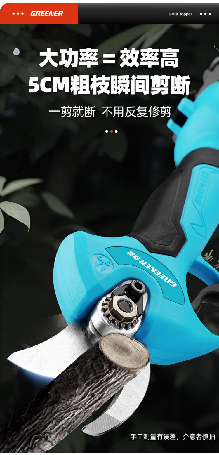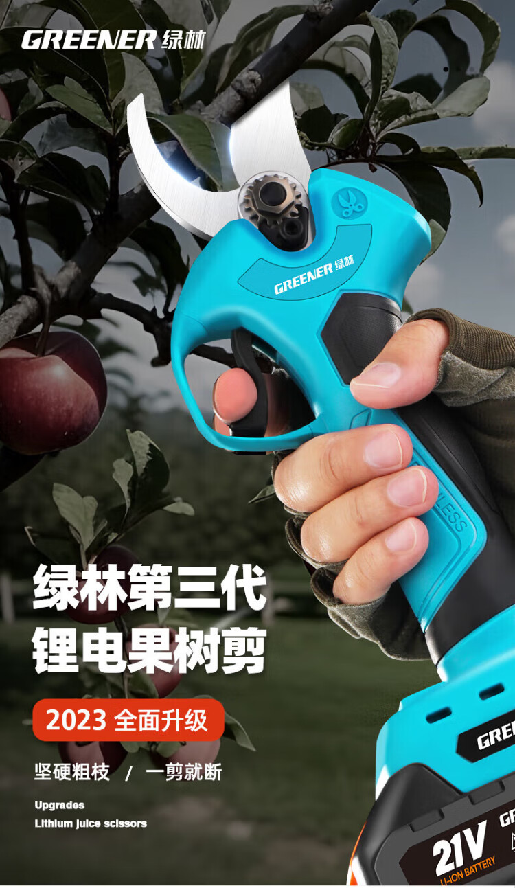 Green forest four-speed electric shears to cut branches, rechargeable fruit tree garden pruning pruning shears pruning machine gardening shears iron sheet 2.5ah