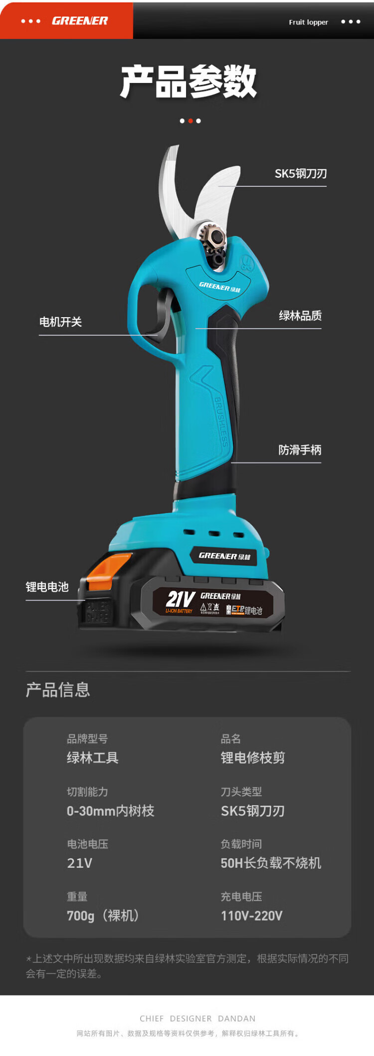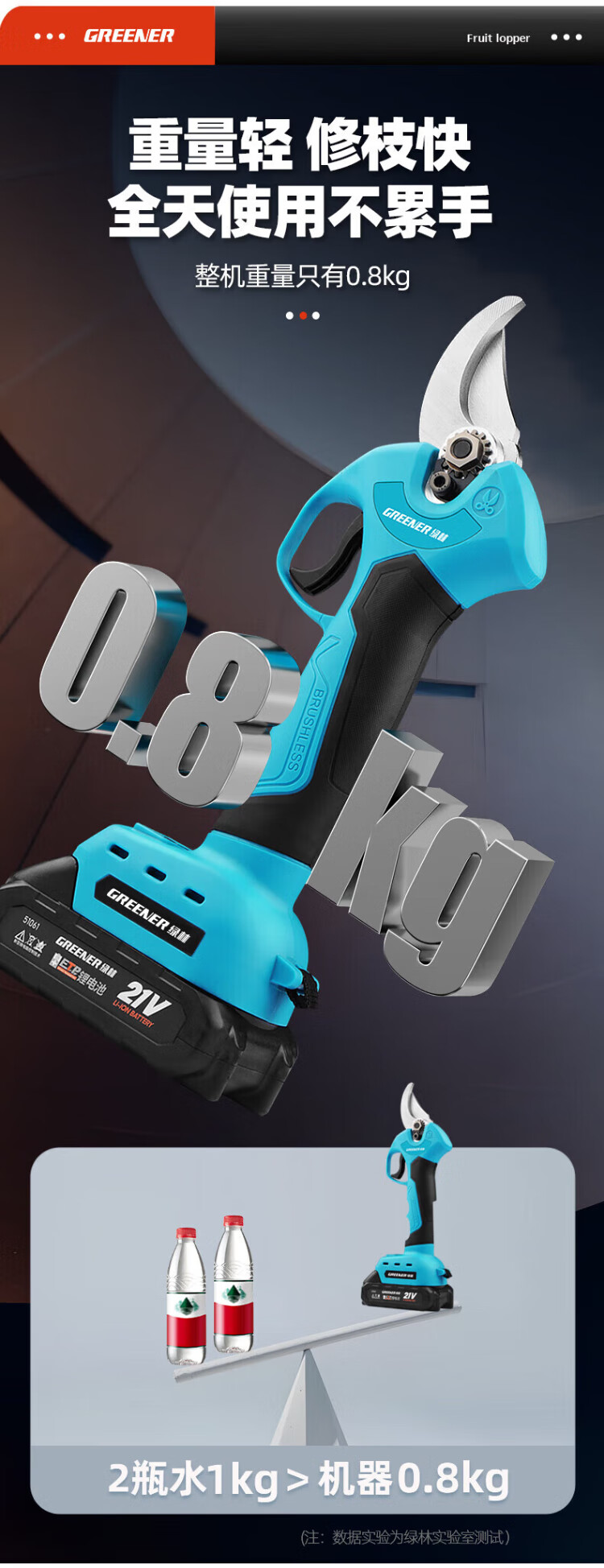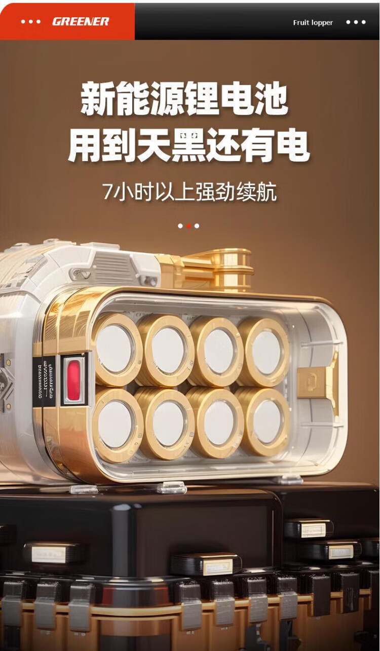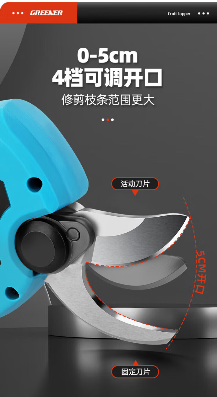 Green forest four-speed electric shears to cut branches, rechargeable fruit tree garden pruning pruning shears pruning machine gardening shears iron sheet 2.5ah