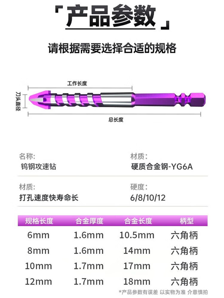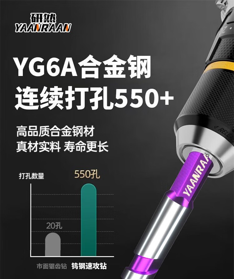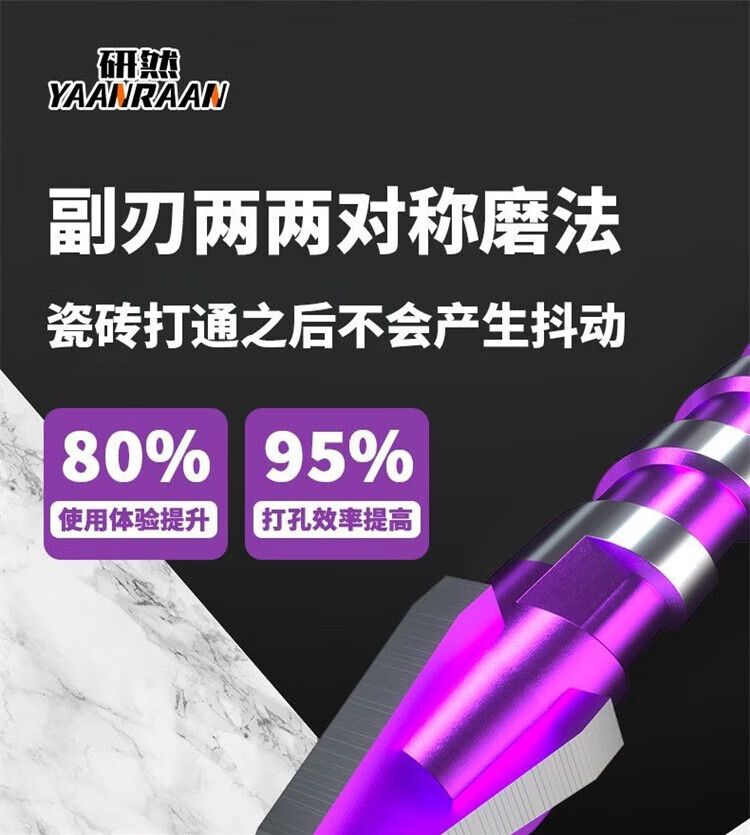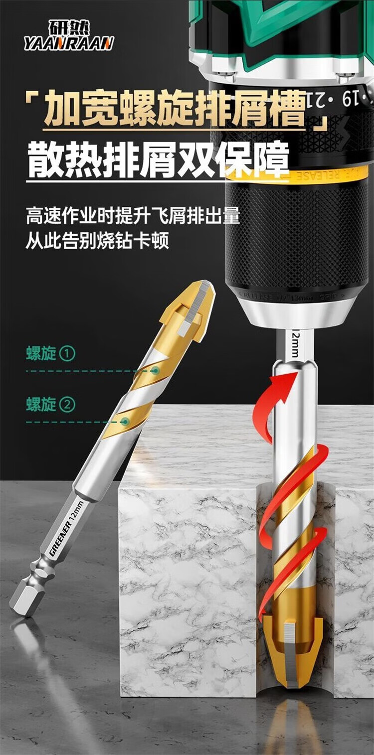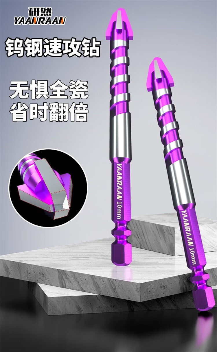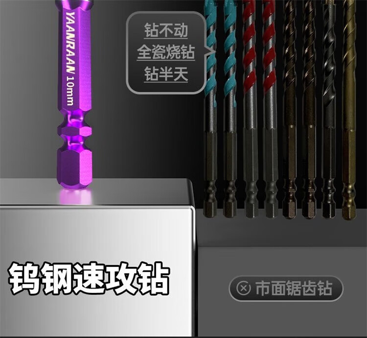 Yanran tungsten steel fast tapping drill four-edged alloy eccentric drill bit for ceramic tile concrete drilling 8mm 3 pieces