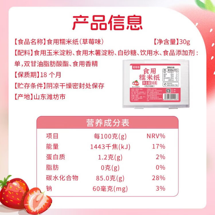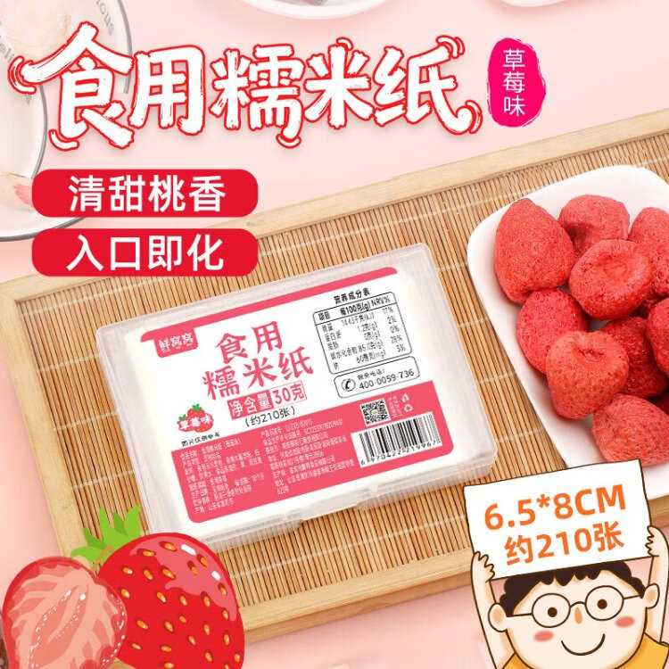 Xianwowo glutinous rice paper strawberry flavor about 210 pieces fruity flavor children's edible candy paper snowflake cake 30g6.5*8cm