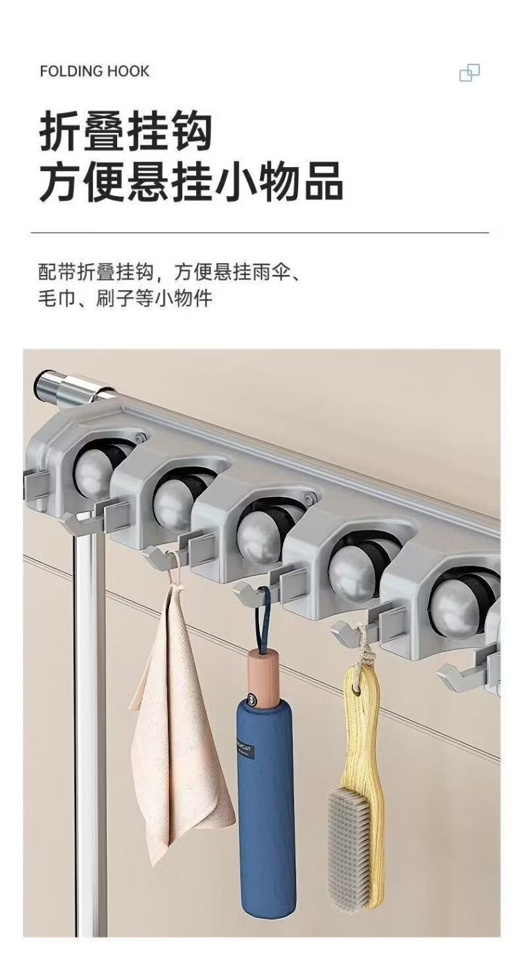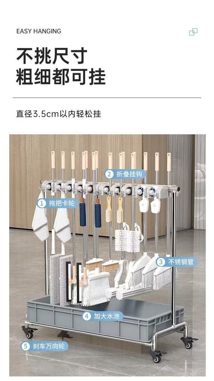 Mamurphy 6-hook 8-hook mop rack floor-standing punch-free mobile stainless steel broom rack hanging storage rack bathroom storage commercial mop gray basin mobile model