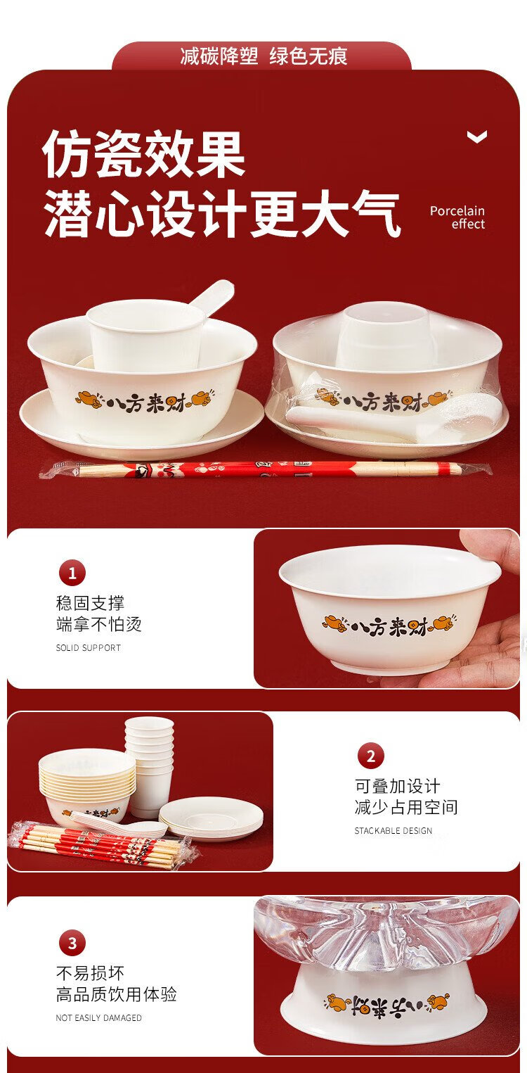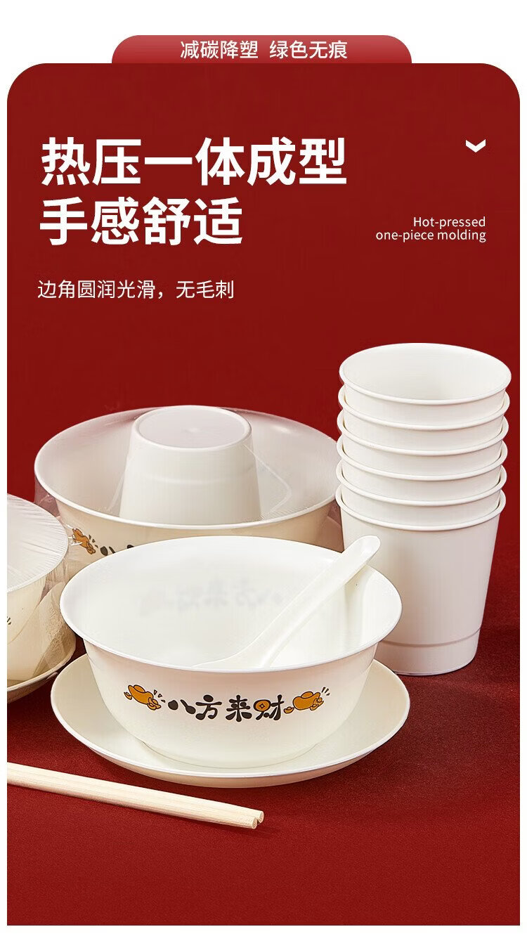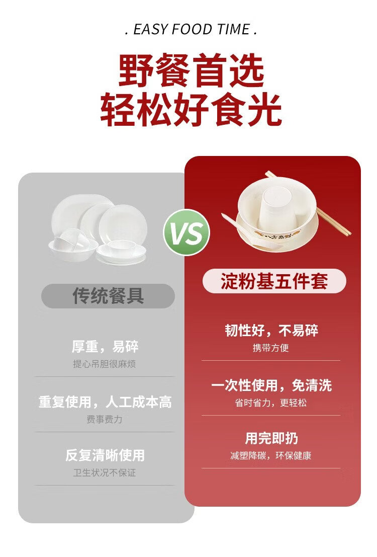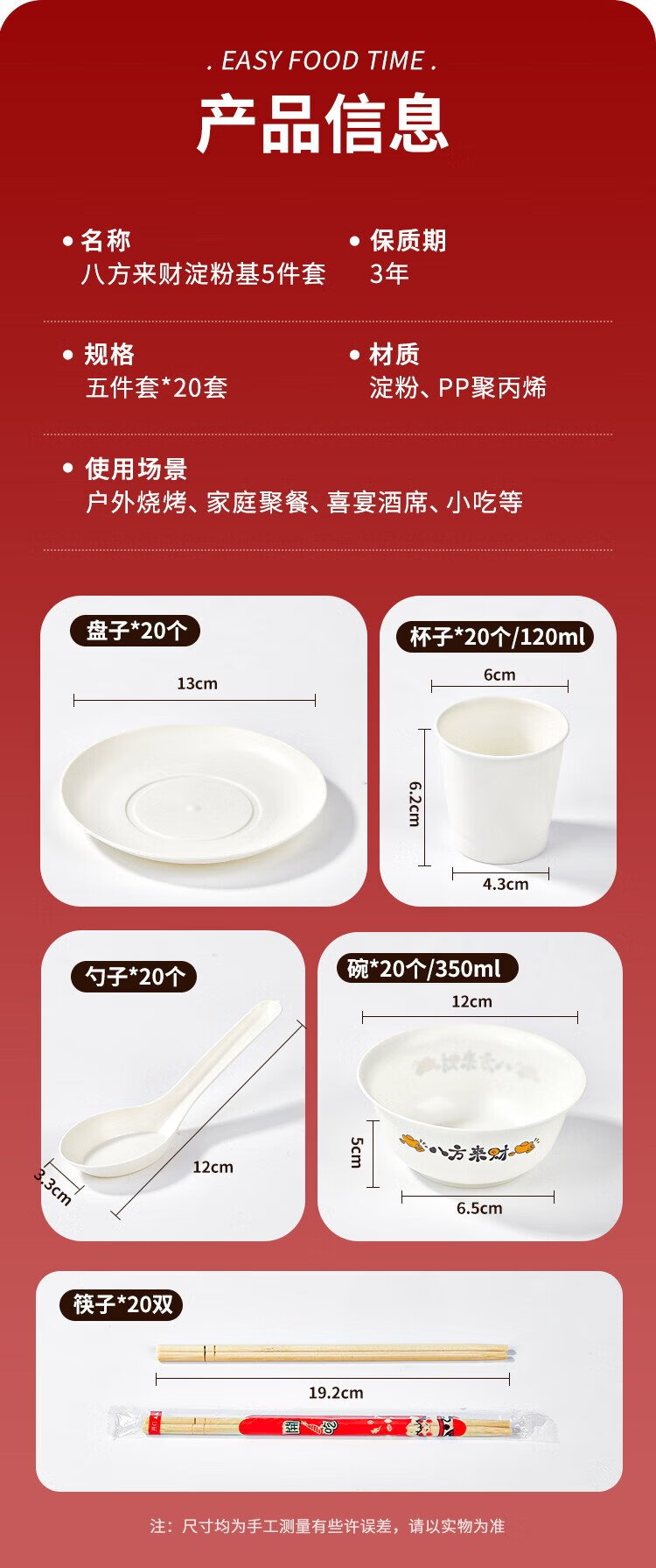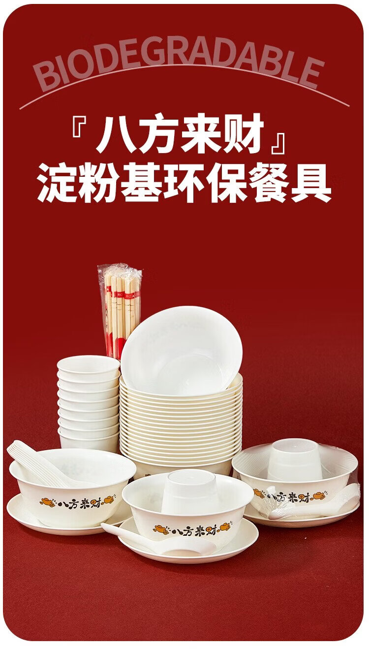 SHUANG YU disposable tableware five-piece set Bafanglaicai corn starch 20 servings (bowl + plate + cup + chopsticks + spoon)