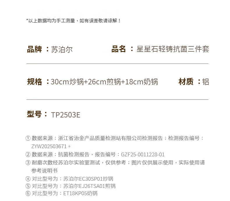SUPOR Supor Star Stone Light Cast Antibacterial Three-piece Set TP2503E