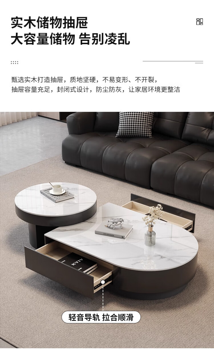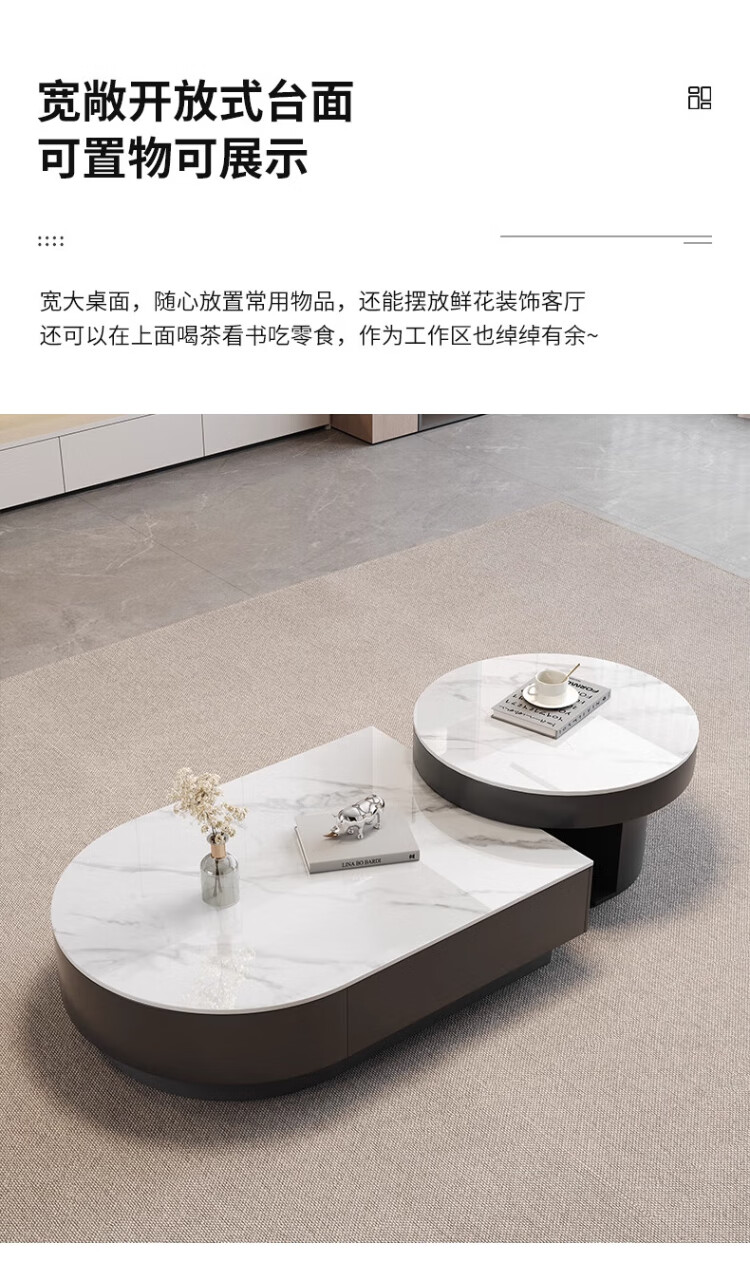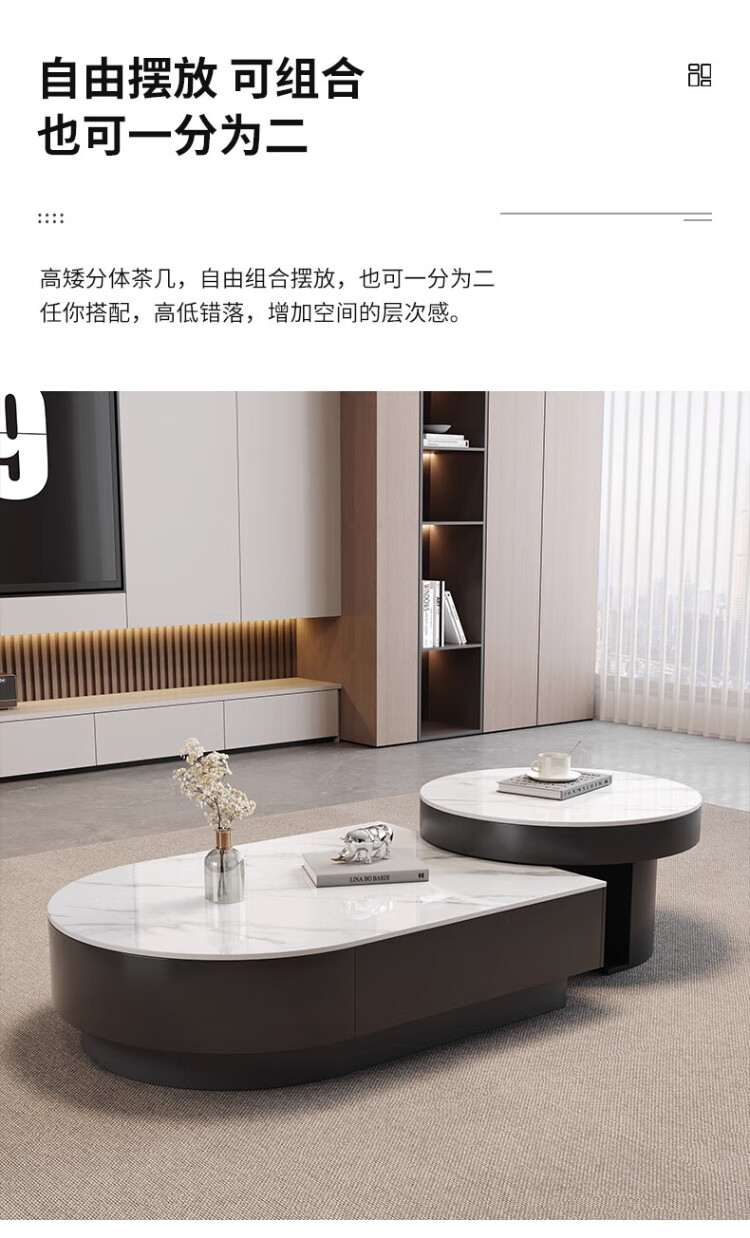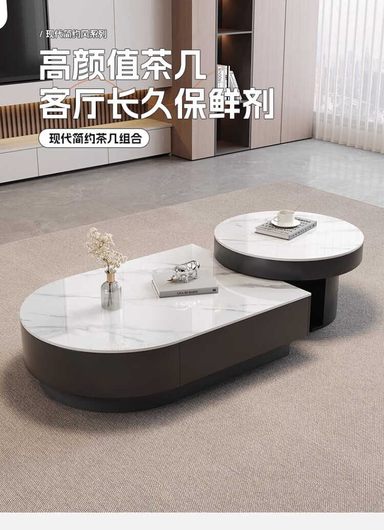 Orange is also a modern and simple slate combination coffee table combination for home living room Italian light luxury and high-end semi-circle retractable coffee table table