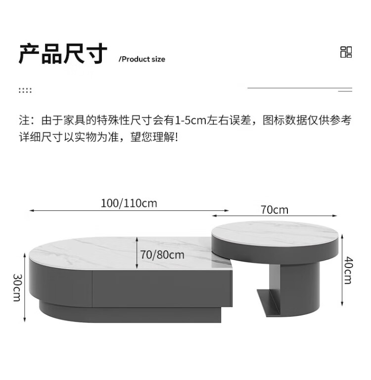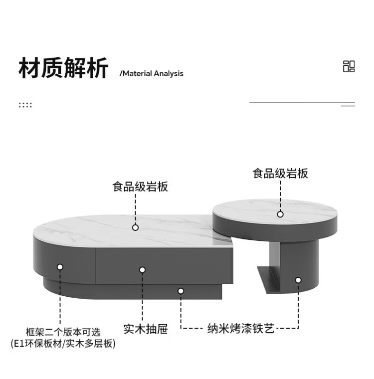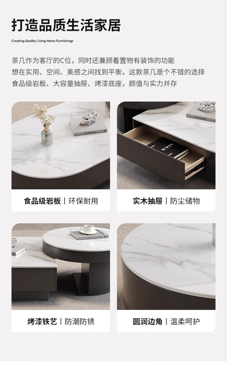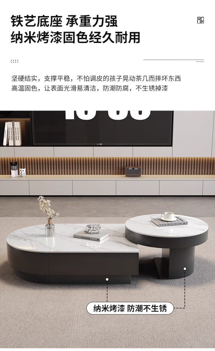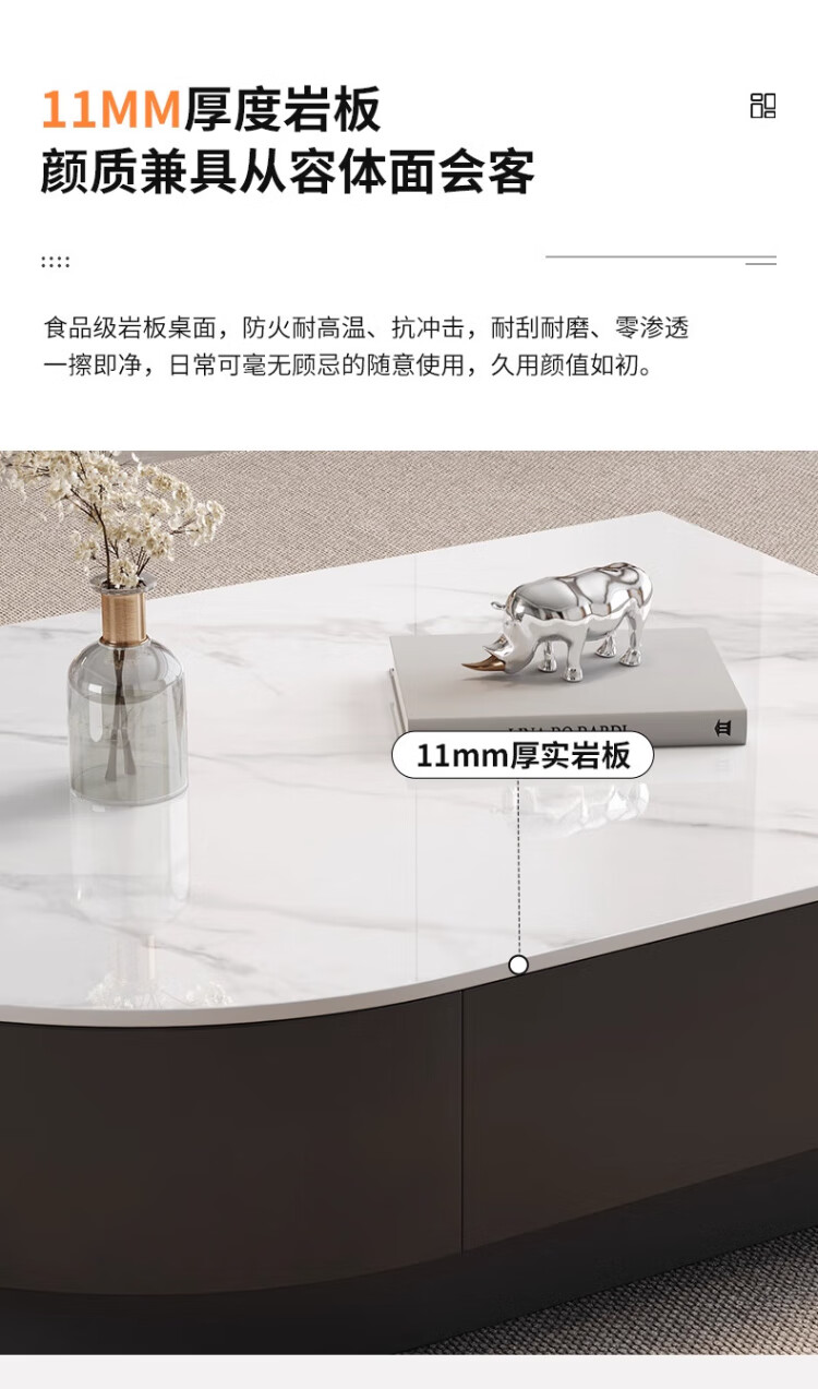 Orange is also a modern and simple slate combination coffee table combination for home living room Italian light luxury and high-end semi-circle retractable coffee table table