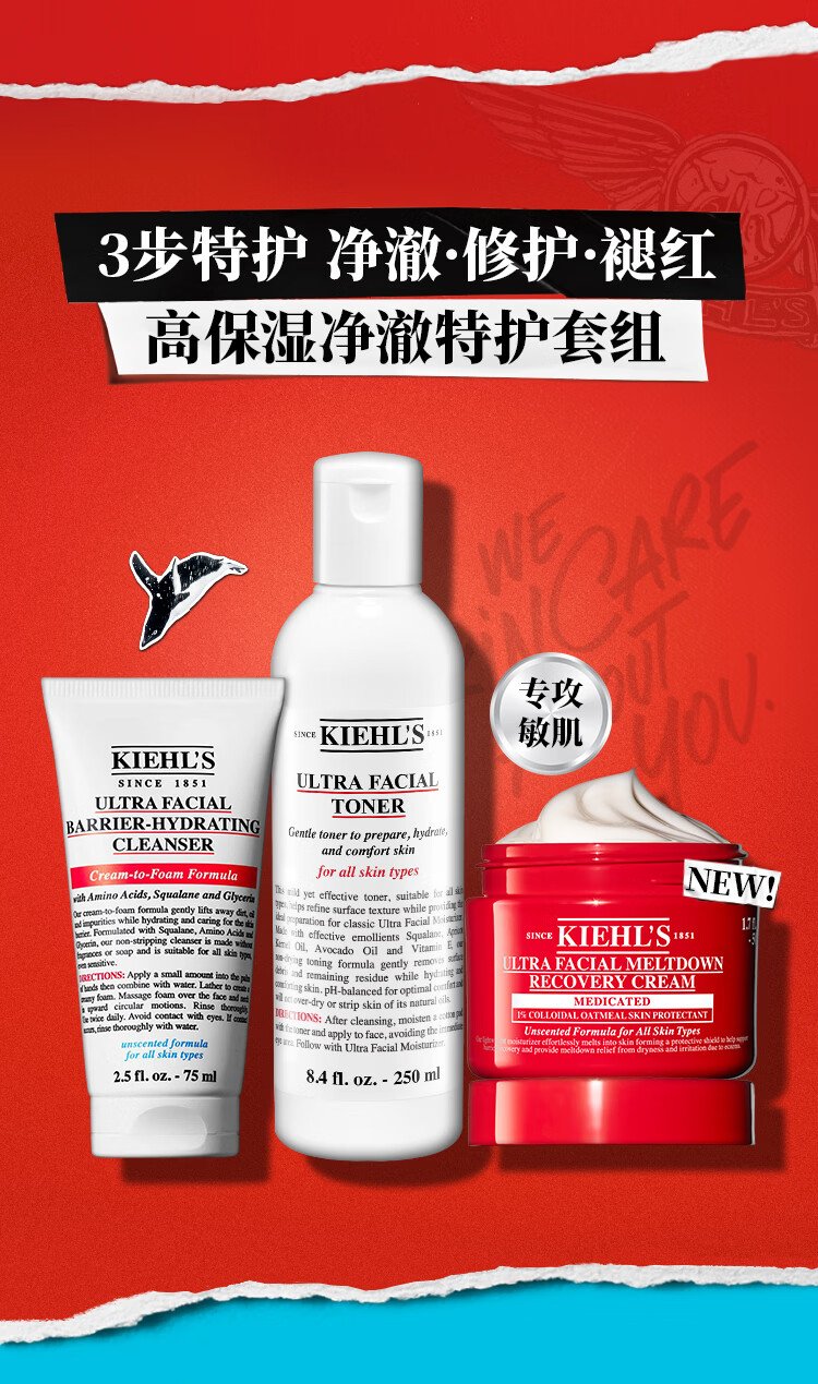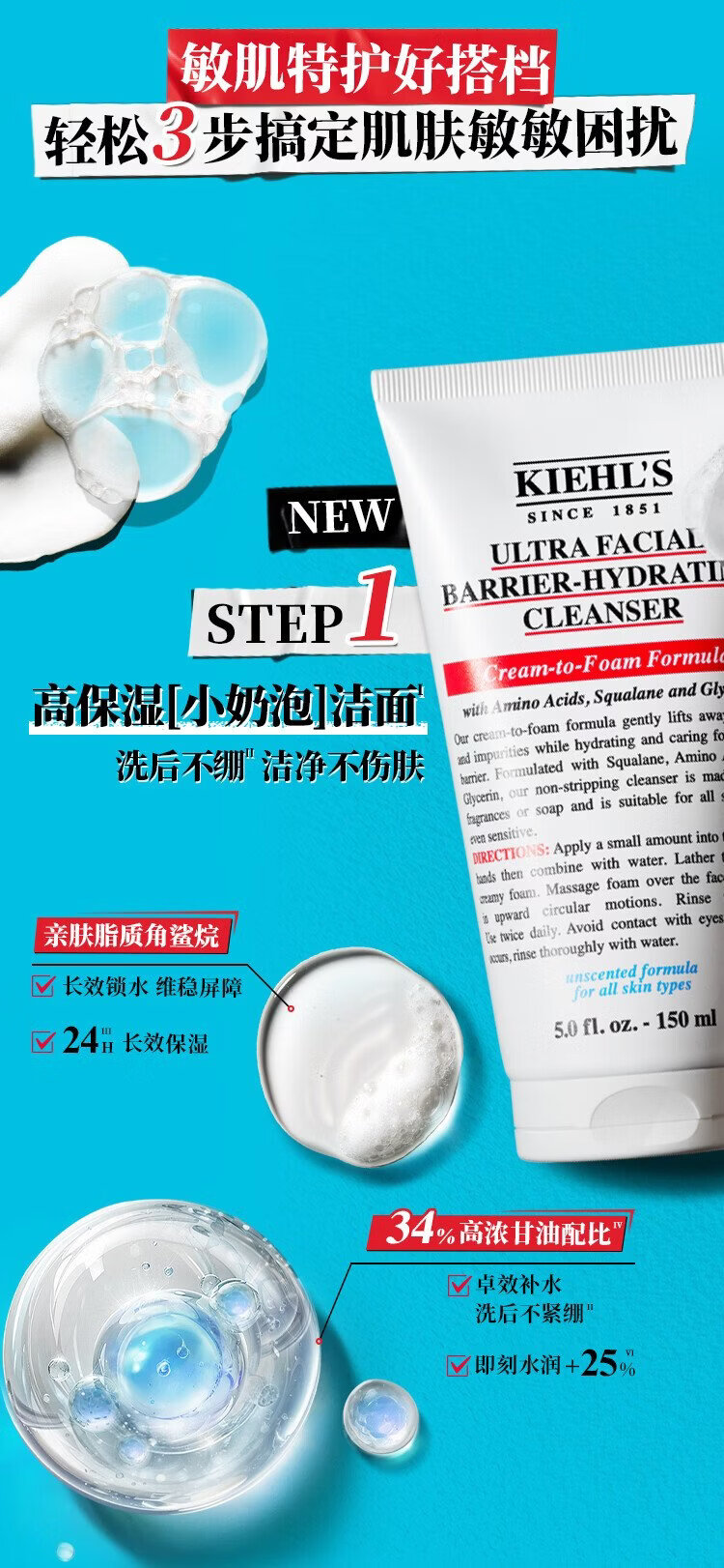 Kiehl's High Moisturizing Set (Emergency Cream 50ML + Small Milk Foam 75ML) Special Care Cream Amino Acid Cleansing Valentine's Day Gift