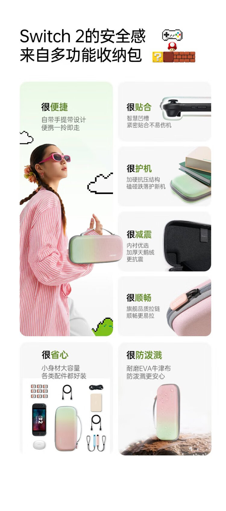 Green Link applicable Switch2 storage bag NS2 game console protective box cover game handheld peripheral accessories multi-functional portable storage box bag large capacity bag anti-fall and pressure-resistant shell black