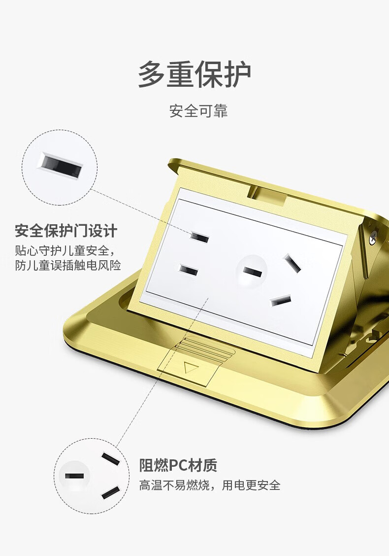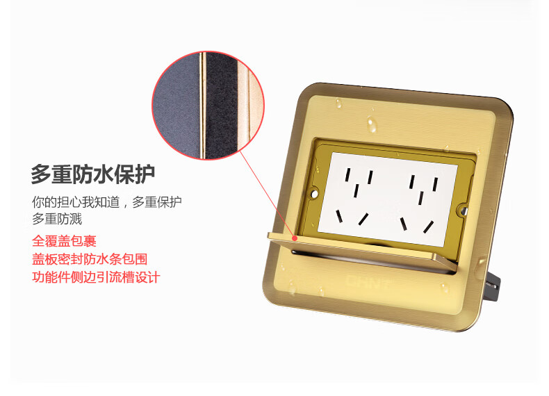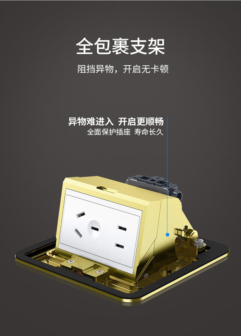 CHINT switch socket floor plug flat embedded floor plug aluminum alloy floor hidden built-in socket classic gold quick pop model classic model