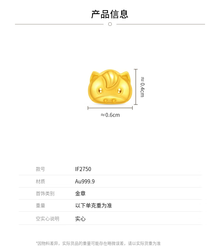 Chow Tai Fook Horse Year Zodiac Pony Pure Gold Gold Seal Little Golden Bean (labor cost 0) 6.2cm about 1g IF2750