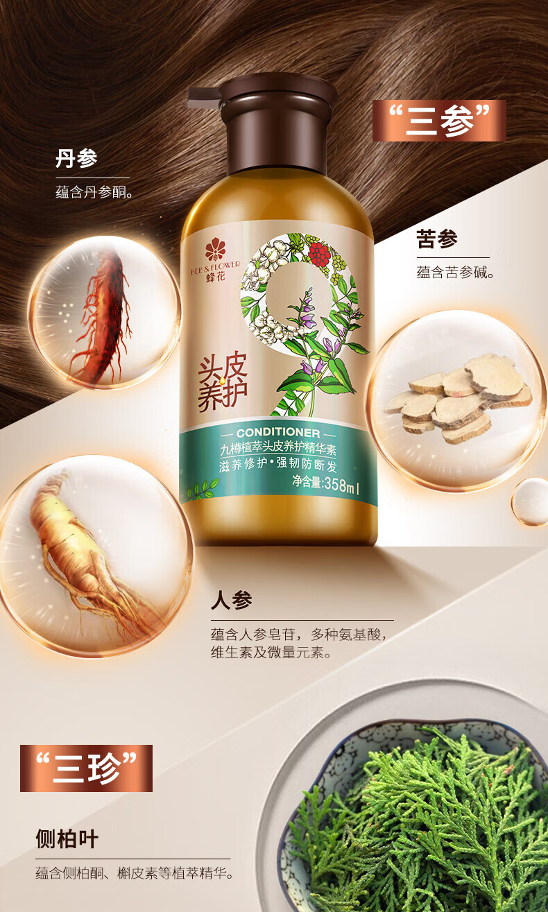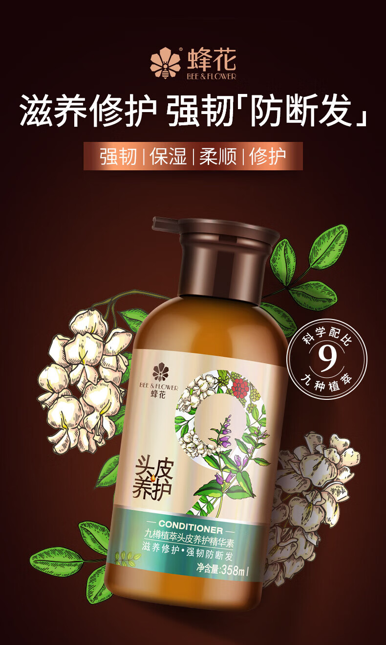 BEE&FLOWER Nine Bottles of Plant Extract Scalp Care Essence Soothes, Nourishes, Repairs and Strengthens Hair 358ml On Clearance