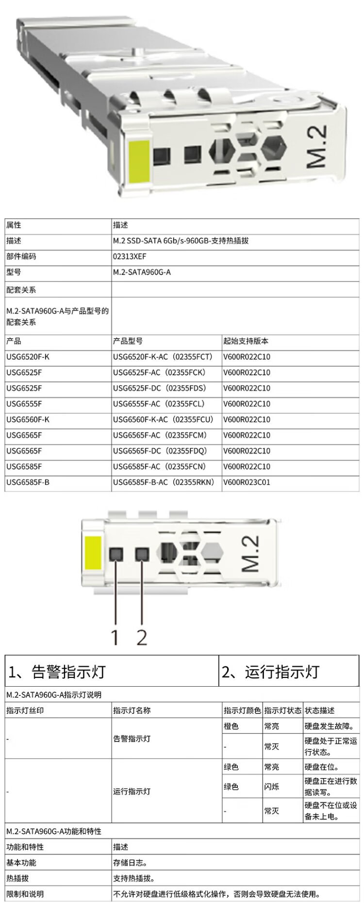 Huawei Kunling M.2-Sata960G-A enterprise-class 960G hard drive solid state supports hot swap and is suitable for USG6000 series firewalls