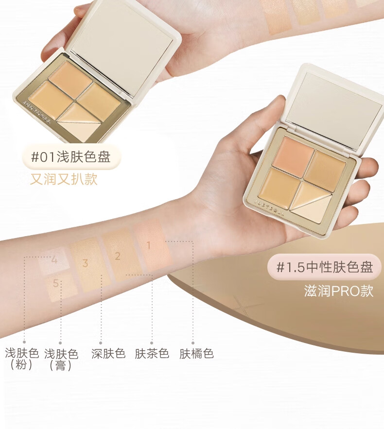 Judydoll Five Color Concealer Palette Concealer Base Makeup Covers Spots, Dark Circles, Brightens Tear Troughs and Nasal Folds 1.5# Natural Skin