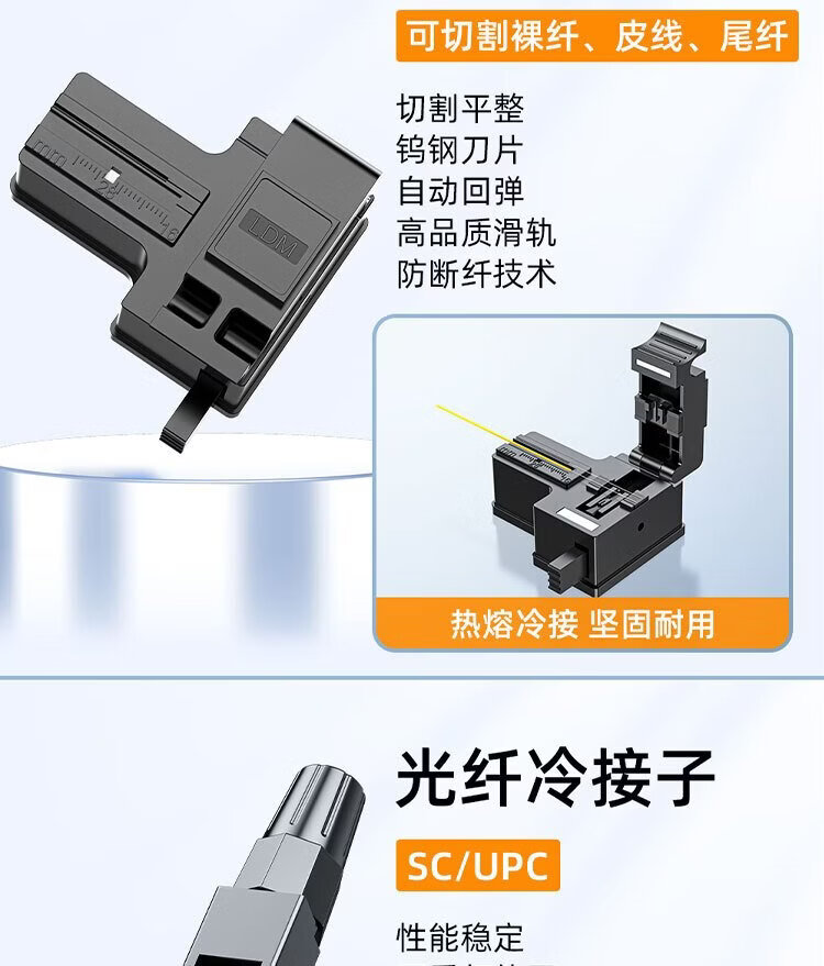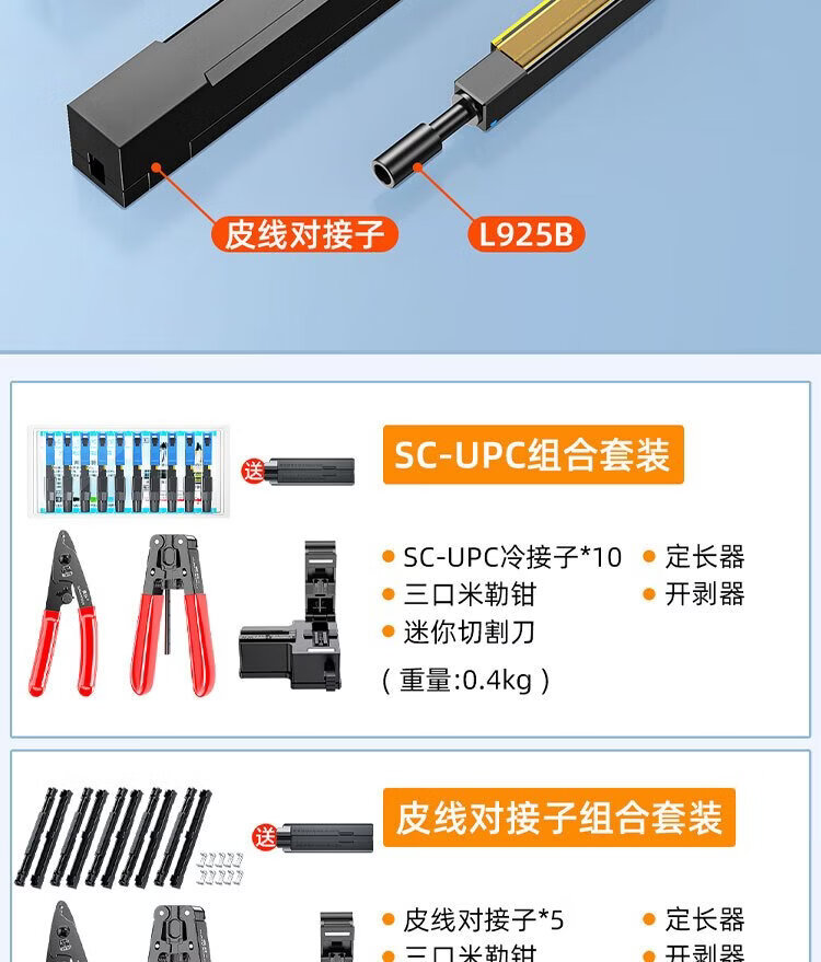 Fiber Optic Cold Splice Tool Set Cutting Knife Stripper Miller Cable Wire Stripper Length Fixer SC/UPC Cold Splice Combination Tool Set