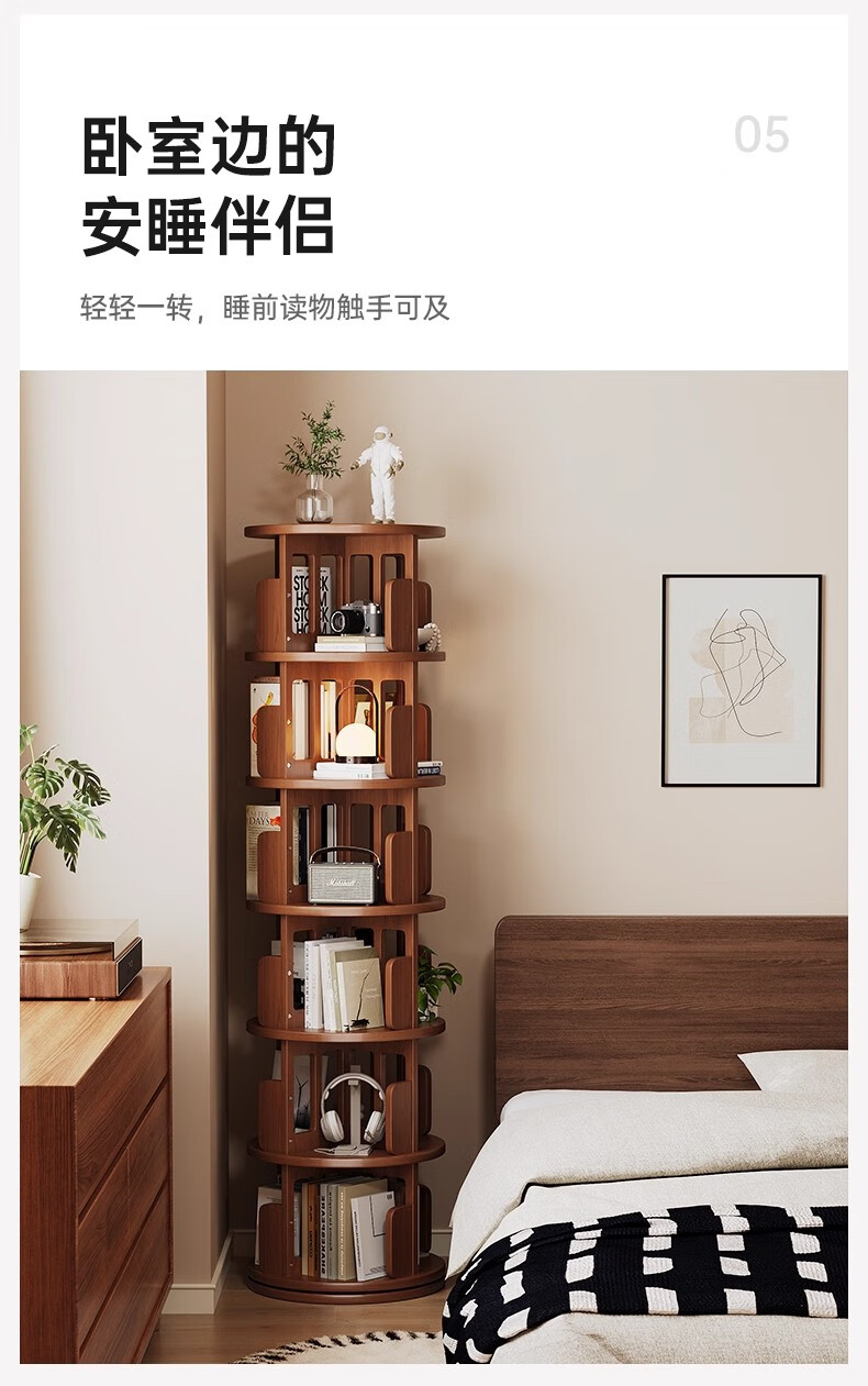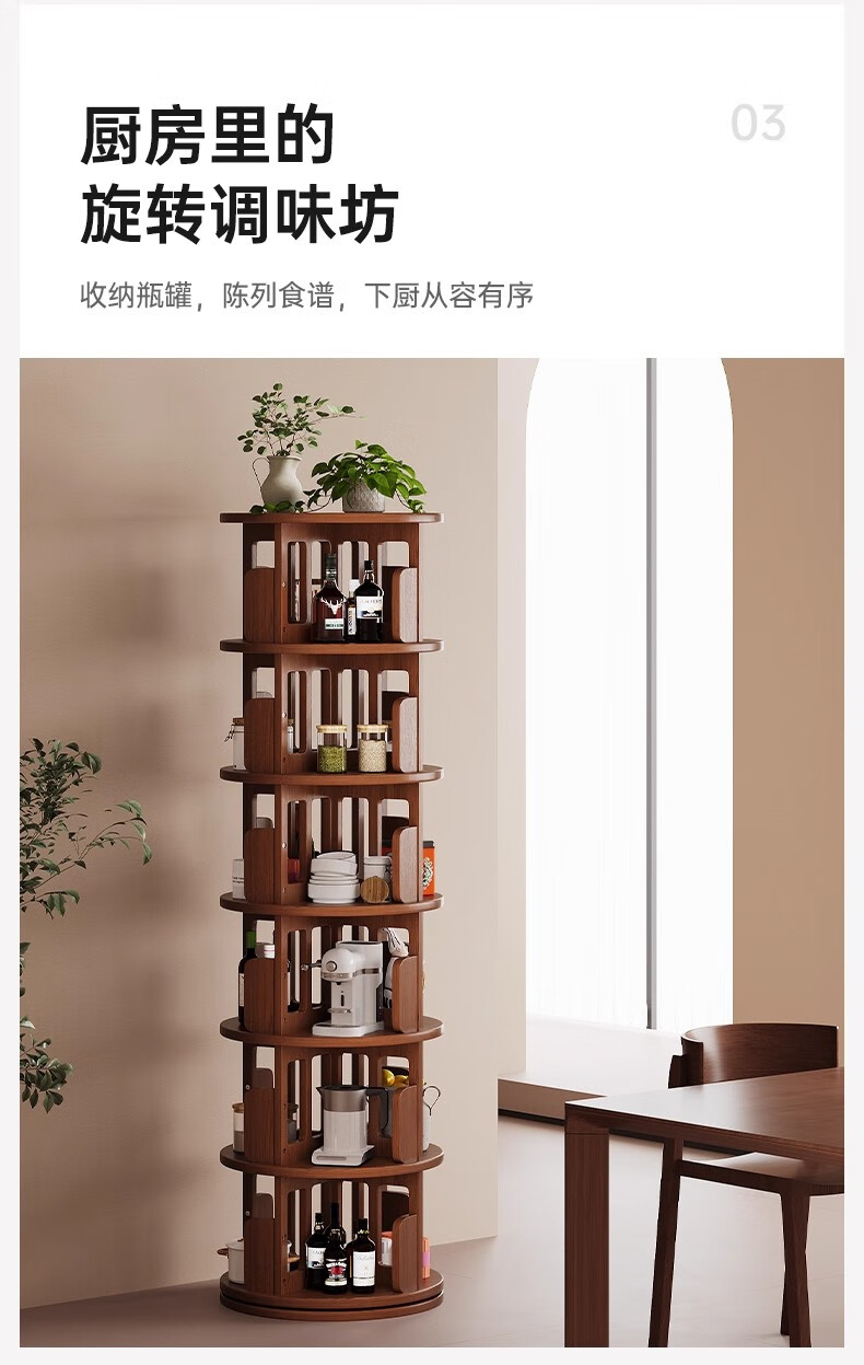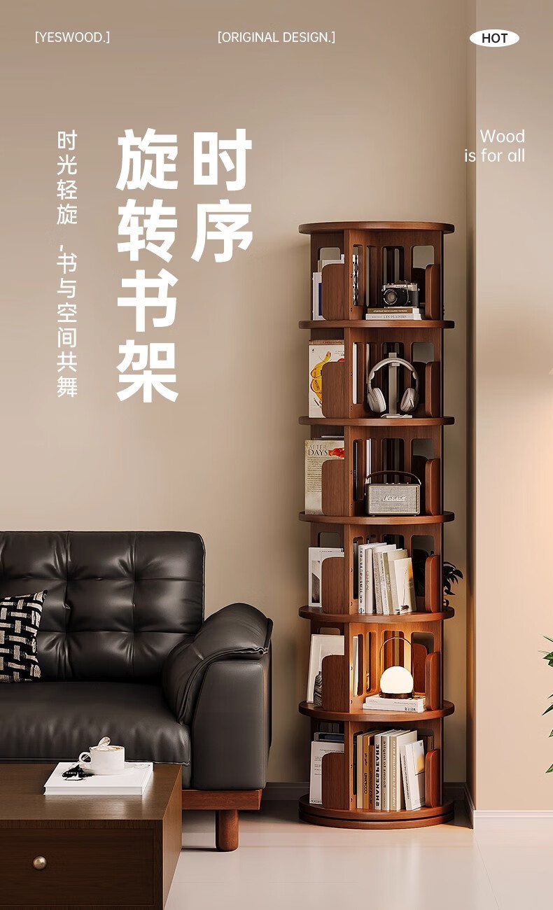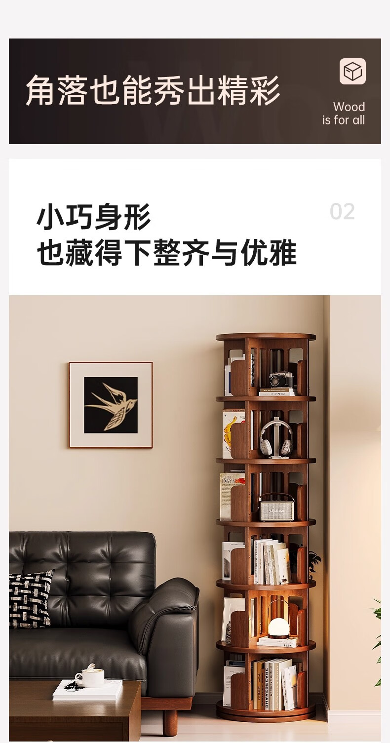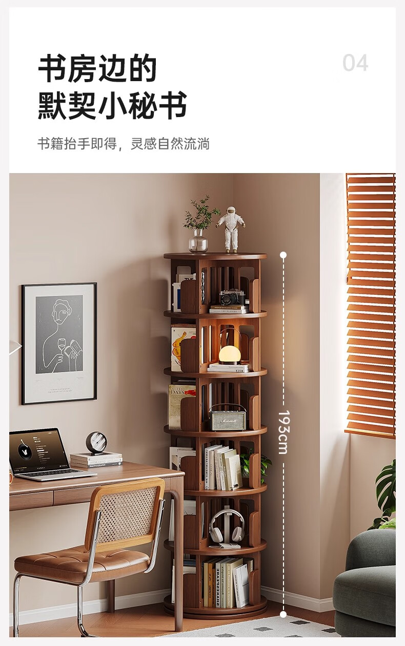 Ouyilang rotating bookshelf 360-degree solid wood bookcase corner storage rack wall-to-ceiling narrow cabinet living room removable storage cabinet