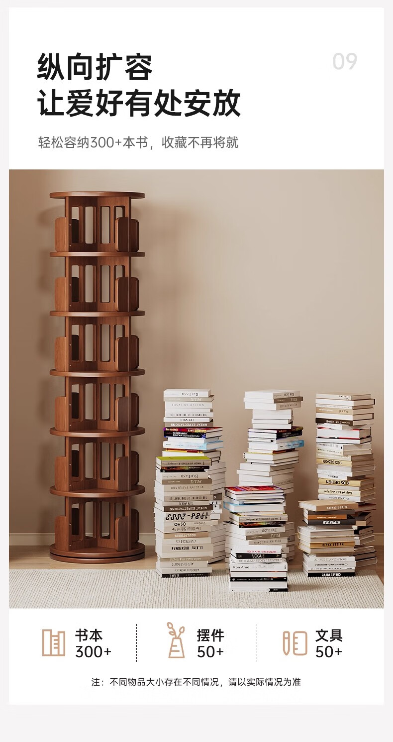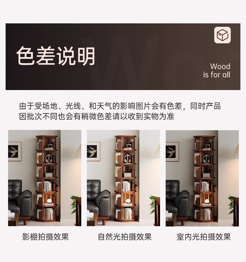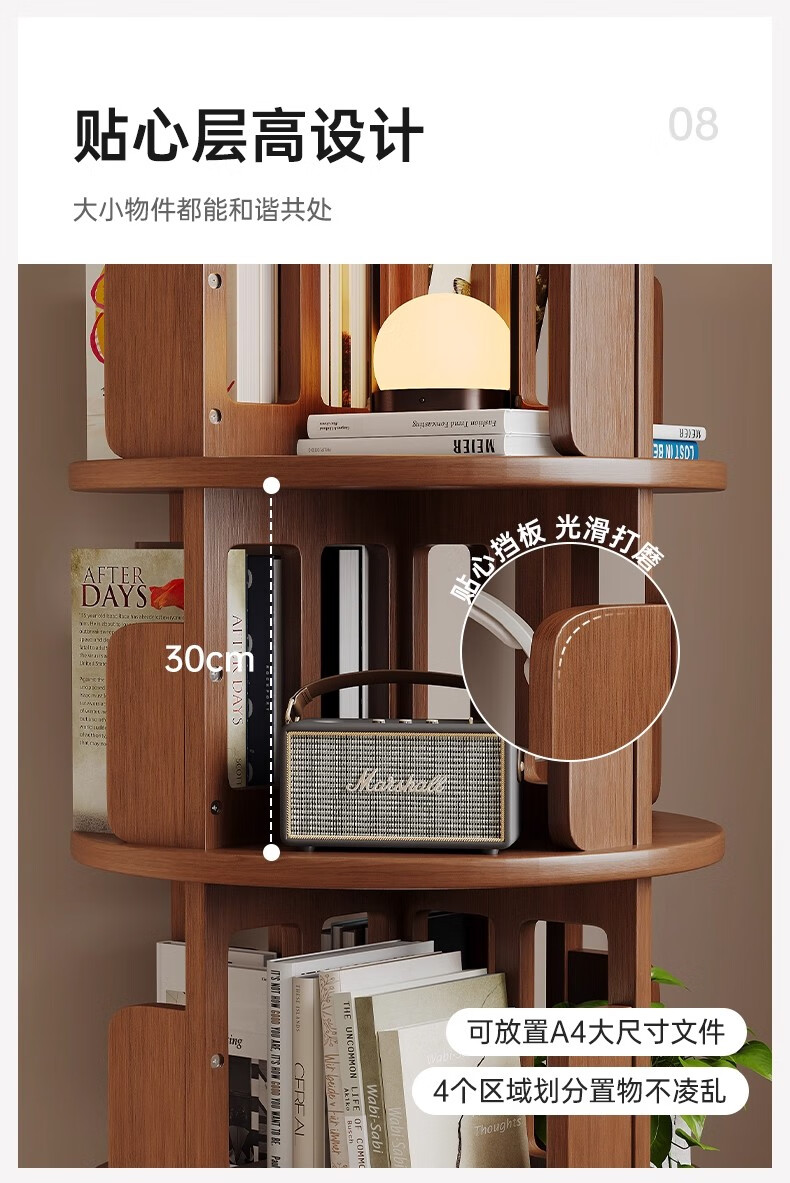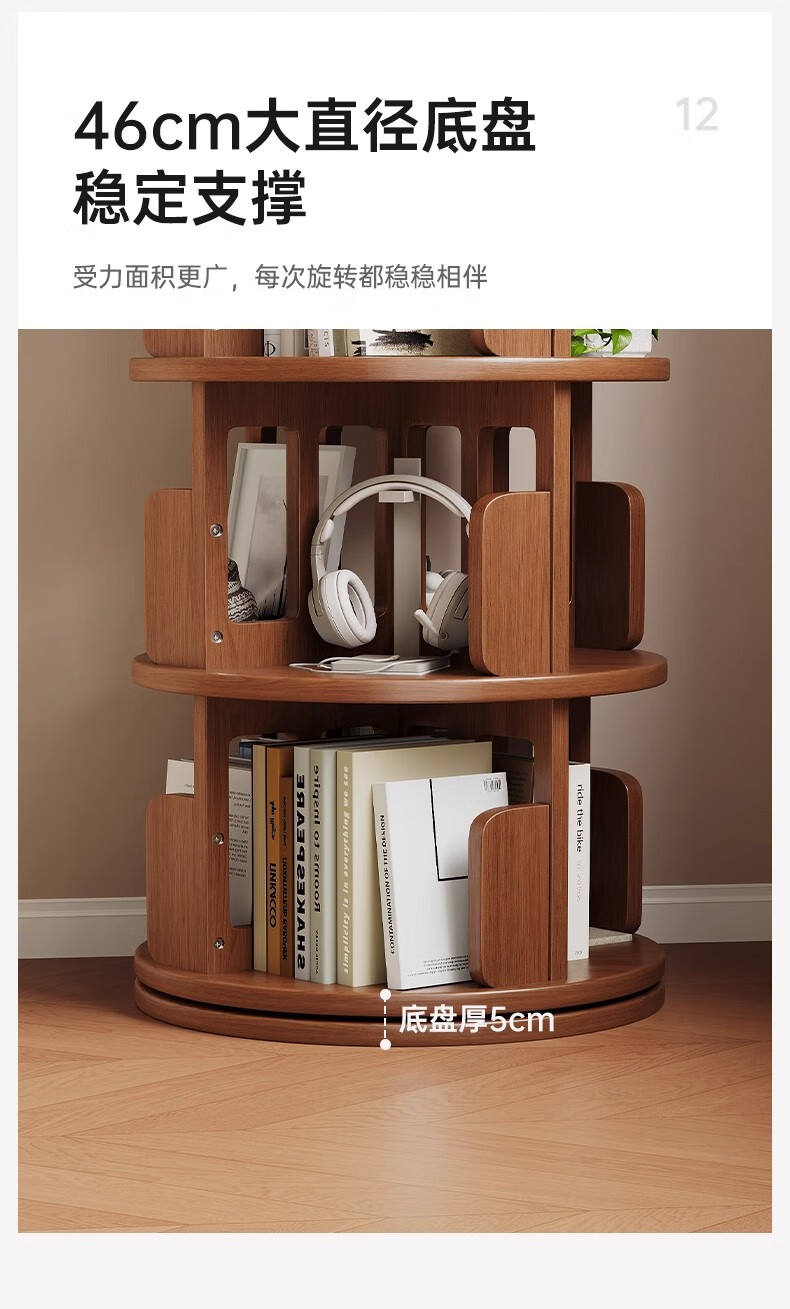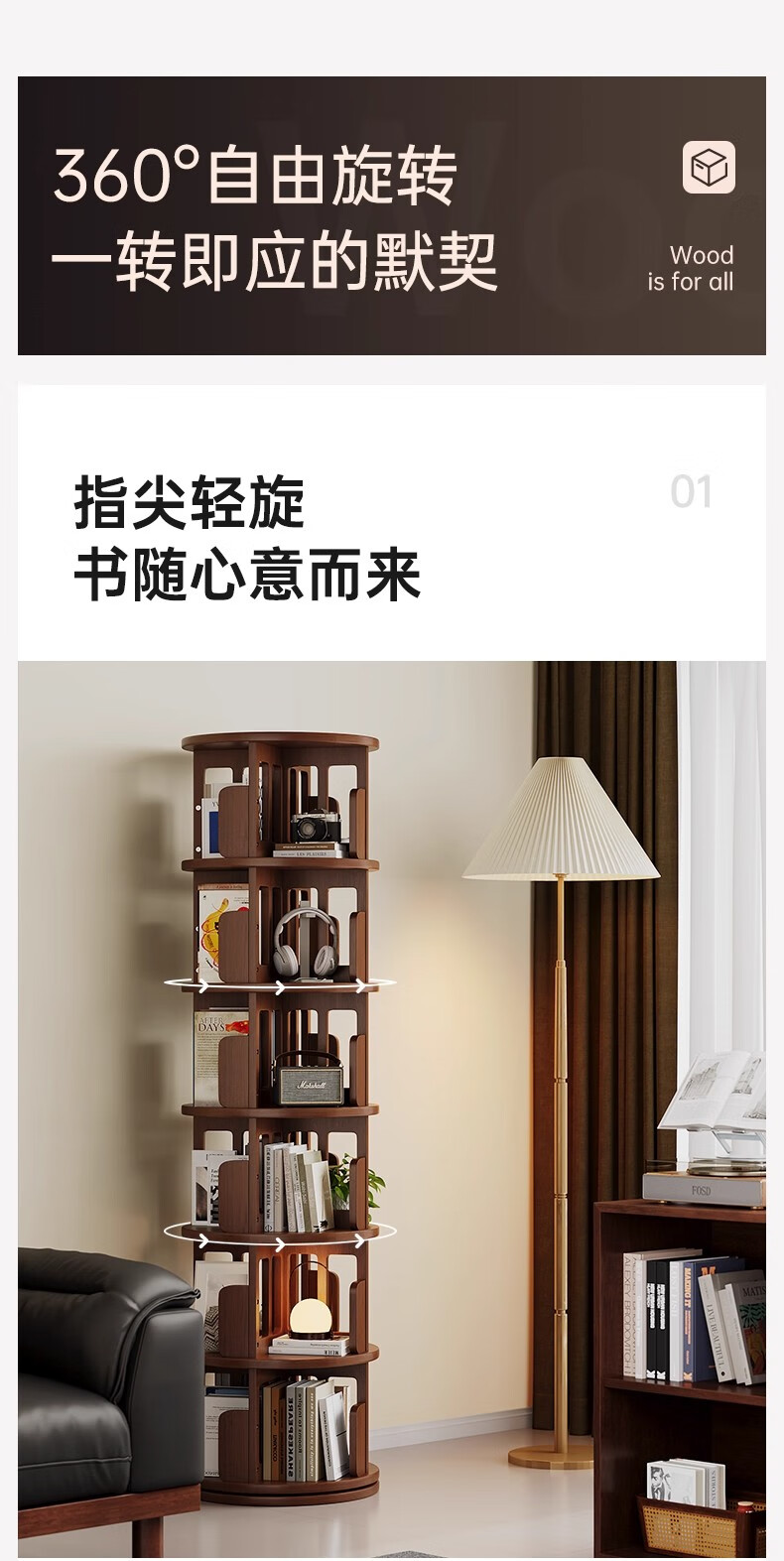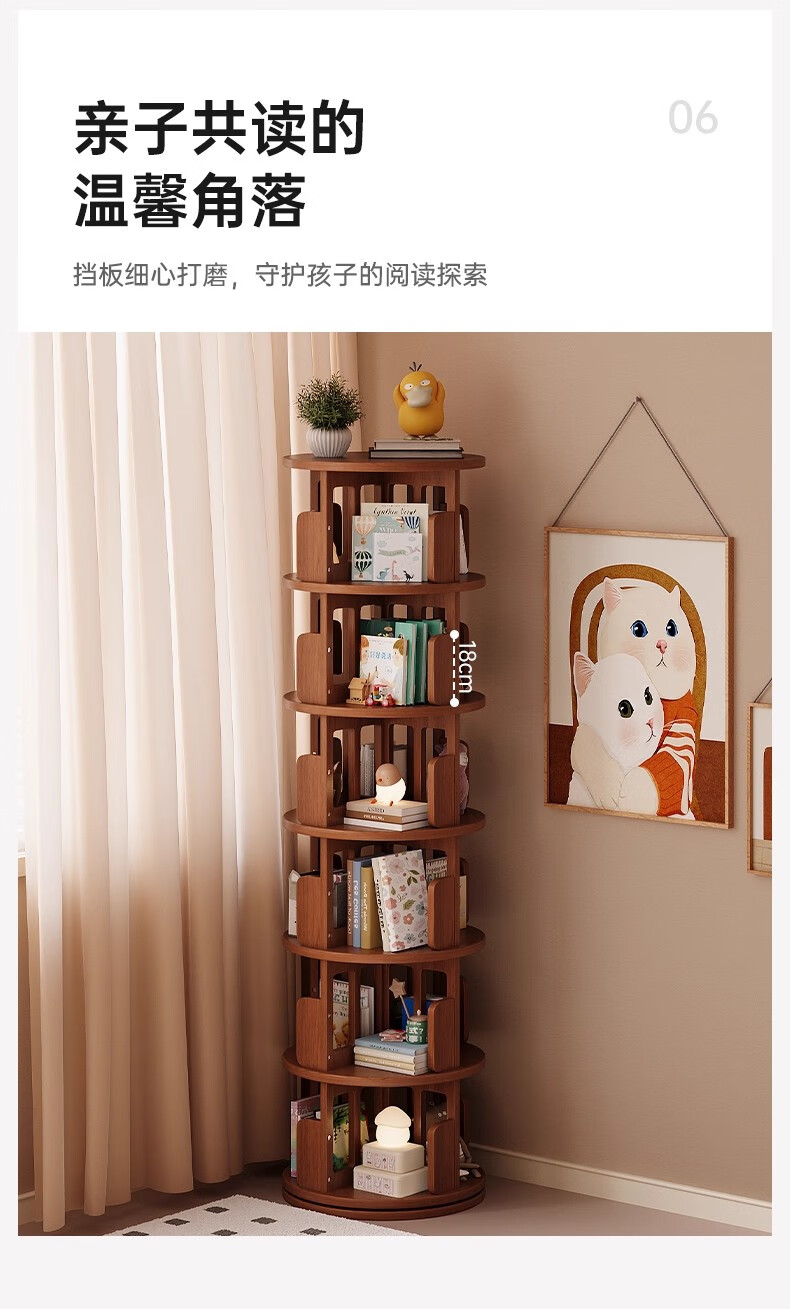 Ouyilang rotating bookshelf 360-degree solid wood bookcase corner storage rack wall-to-ceiling narrow cabinet living room removable storage cabinet