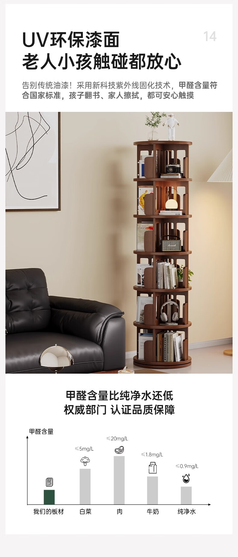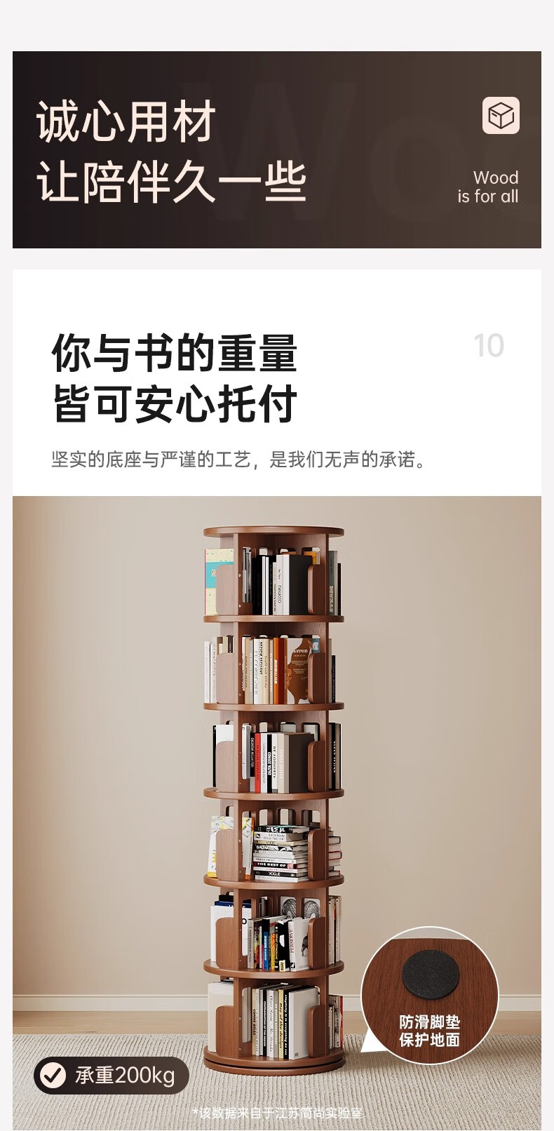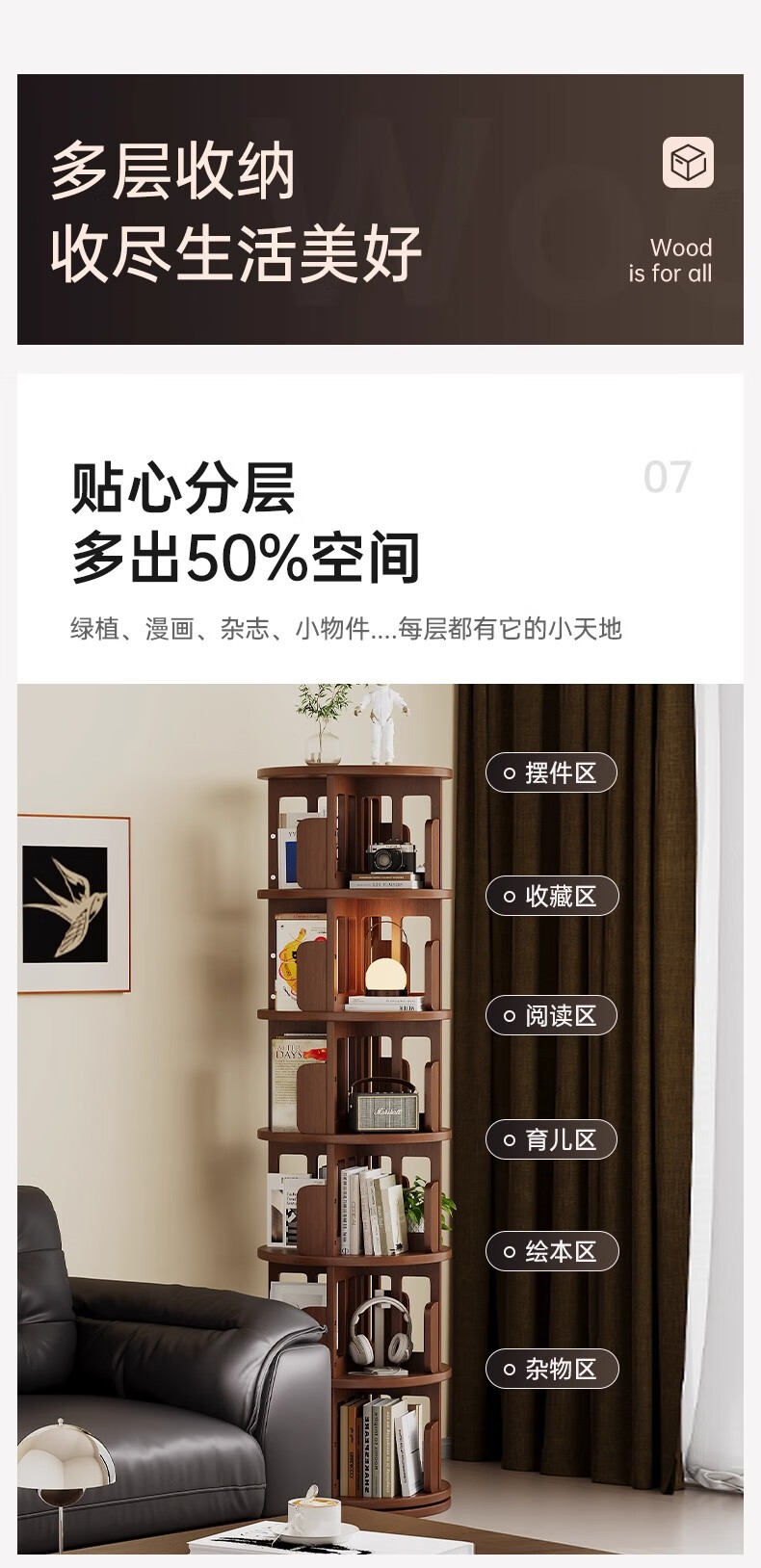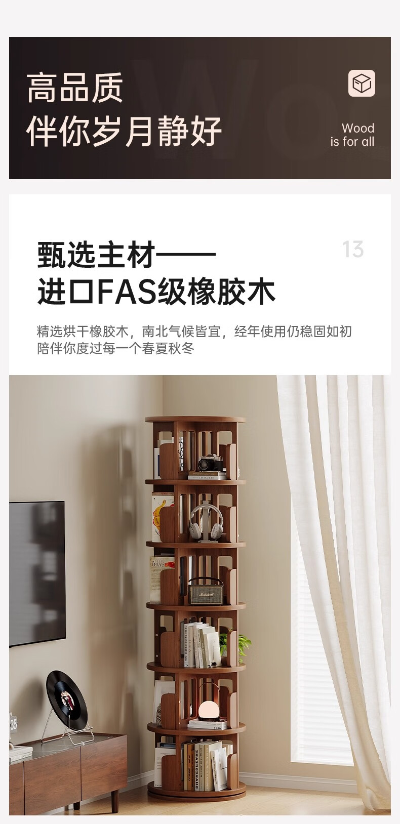 Ouyilang rotating bookshelf 360-degree solid wood bookcase corner storage rack wall-to-ceiling narrow cabinet living room removable storage cabinet