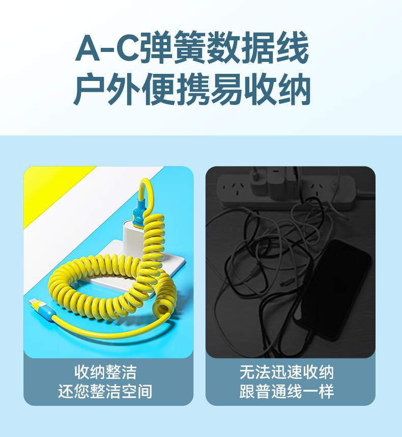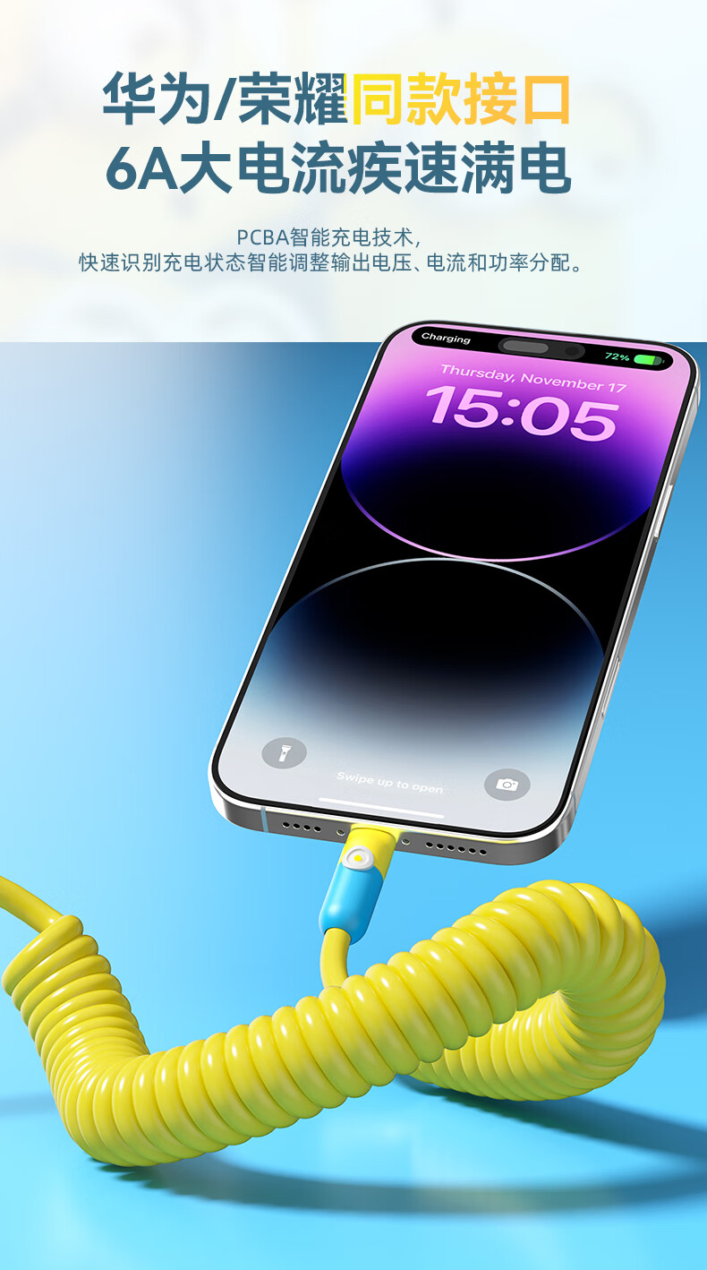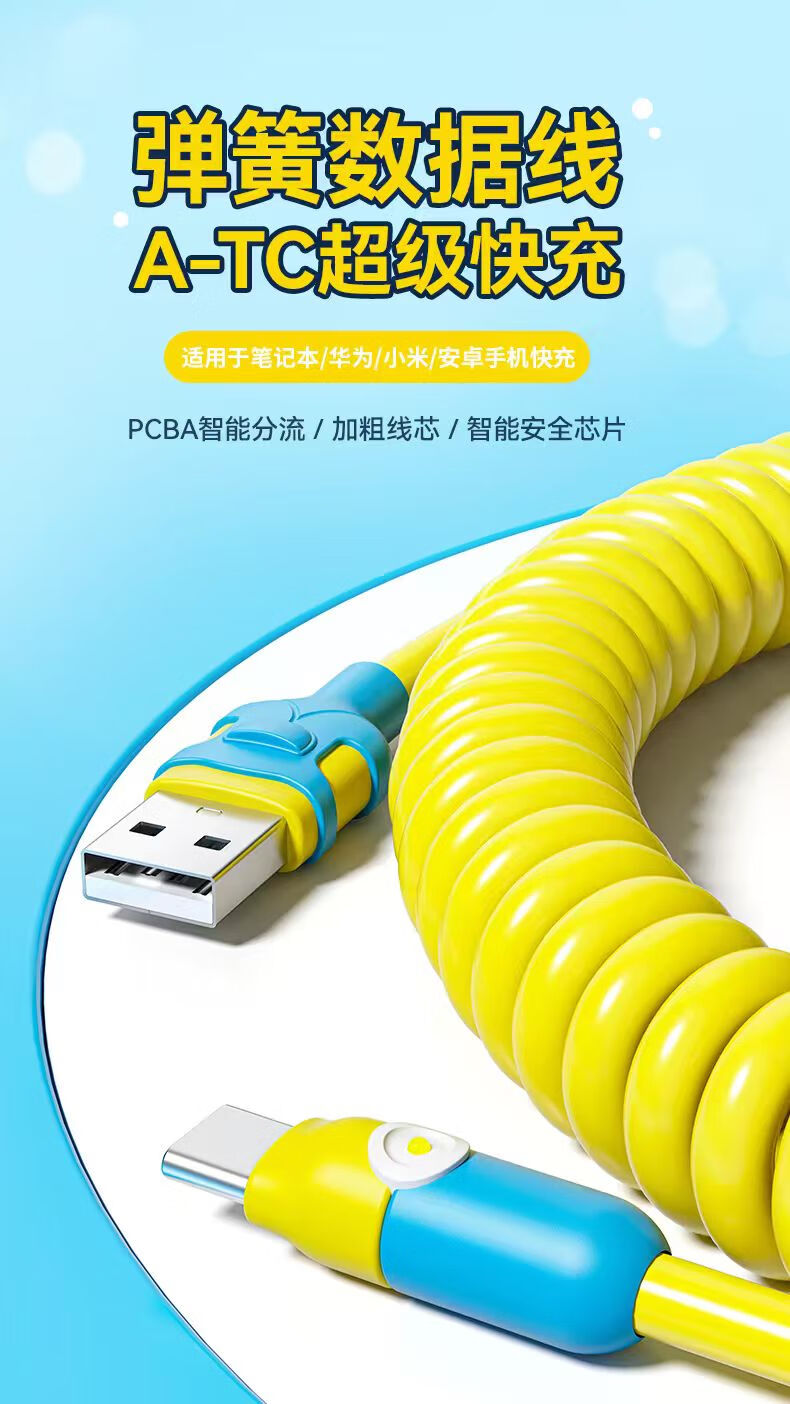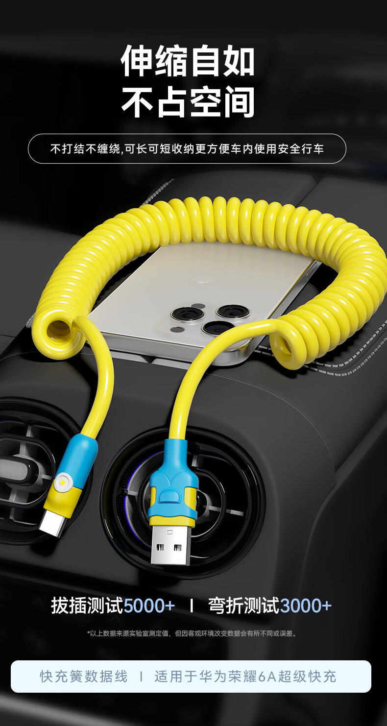Zitai 100W fast charging data cable Type-C Huawei/Xiaomi/Honor/OPPO/VIVO super fast charging cable spring retractable car portable 1.2 beige