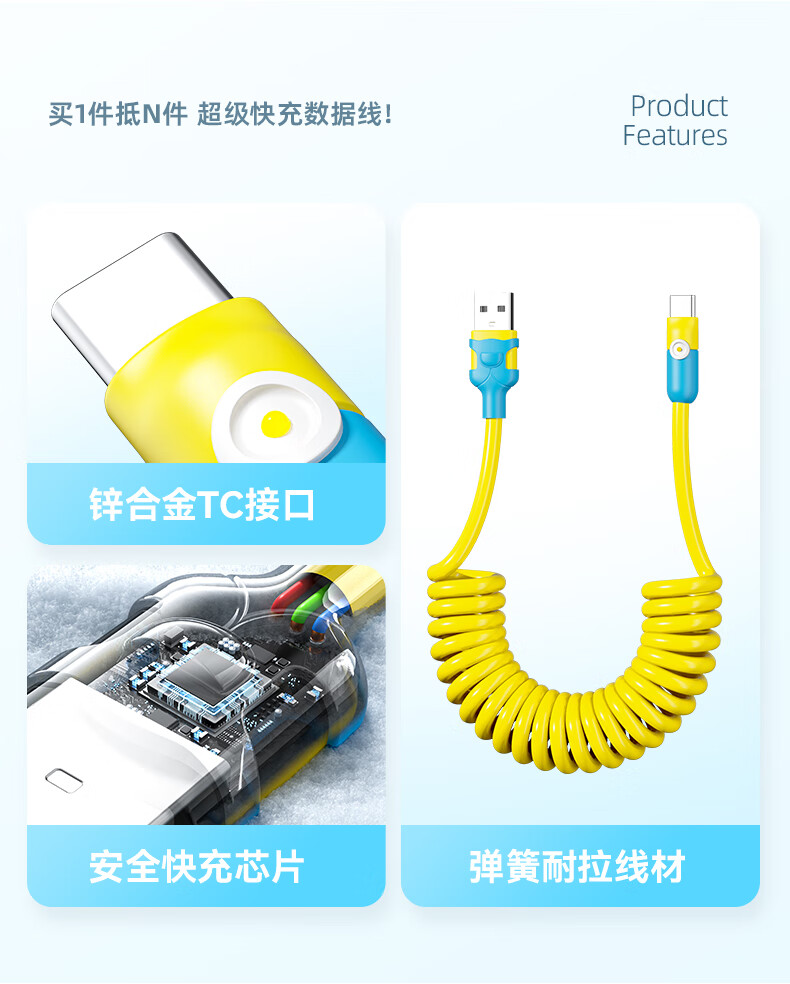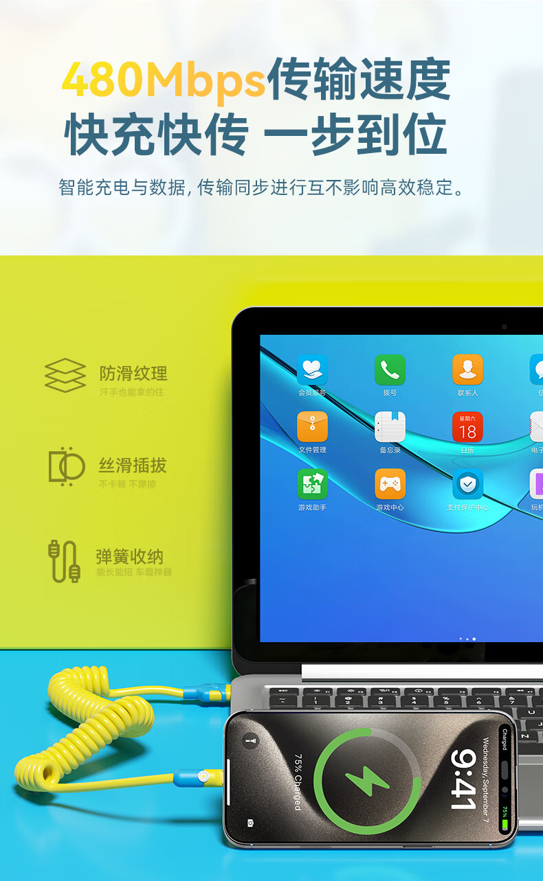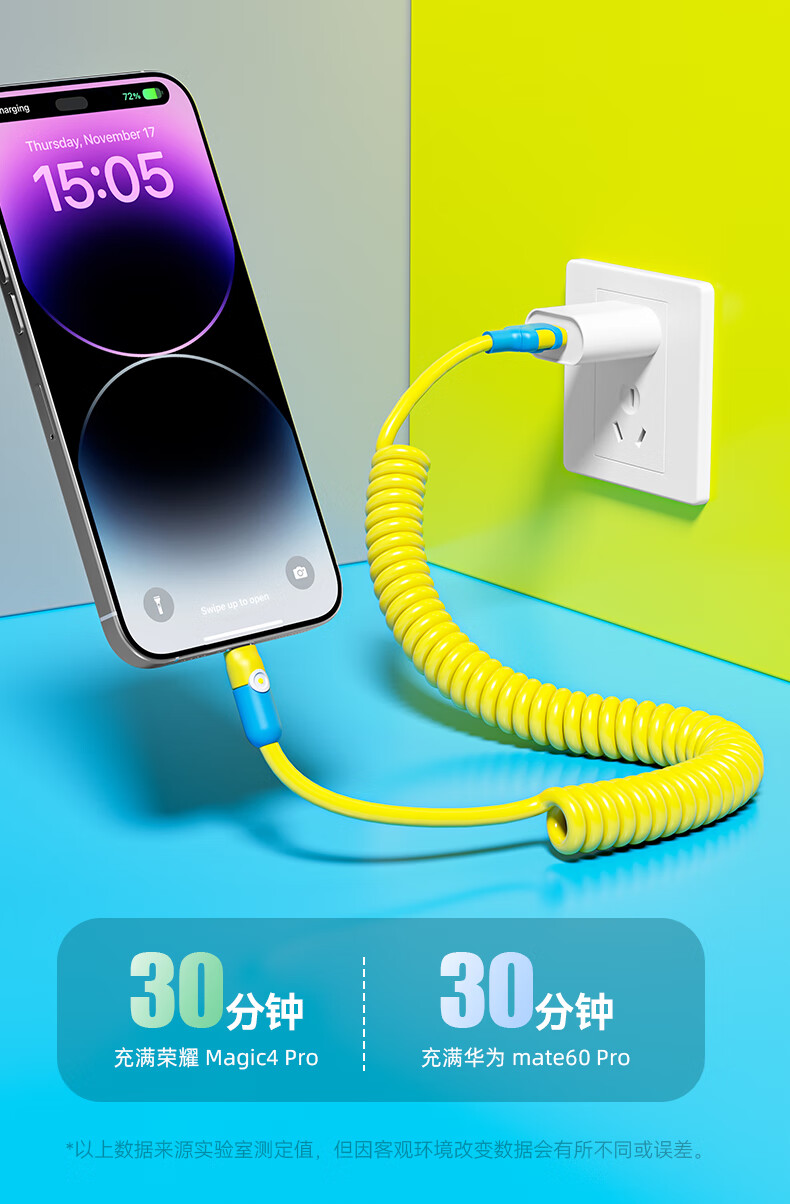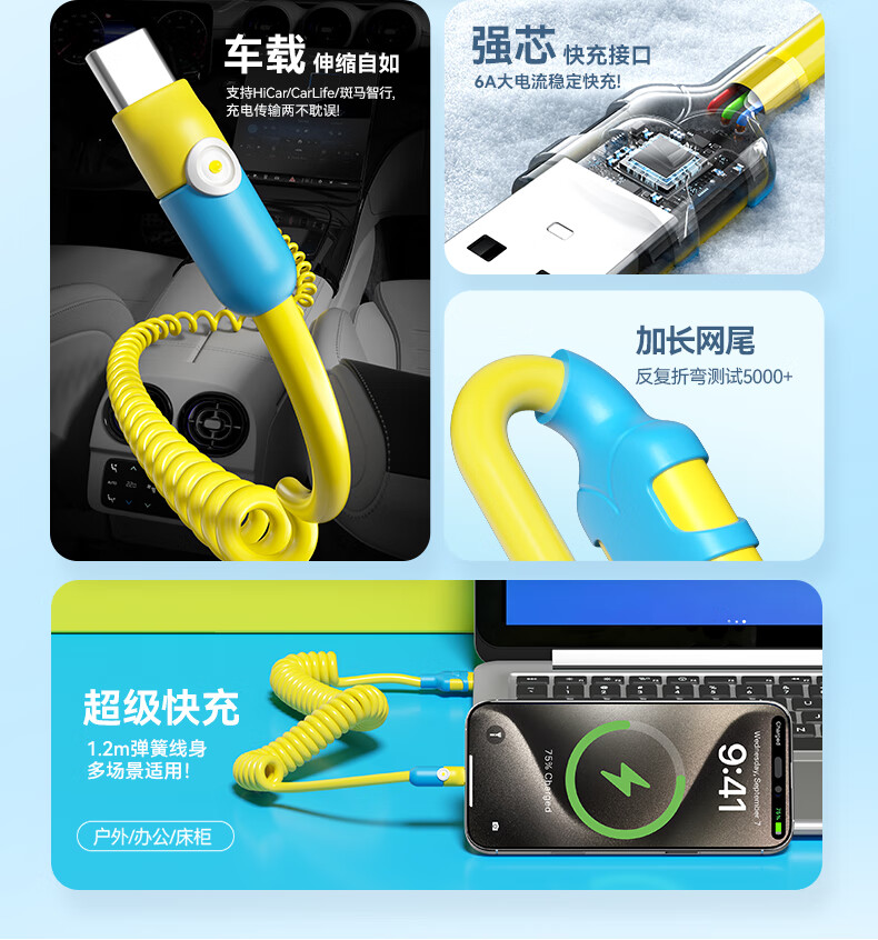 Zitai 100W fast charging data cable Type-C Huawei/Xiaomi/Honor/OPPO/VIVO super fast charging cable spring retractable car portable 1.2 beige