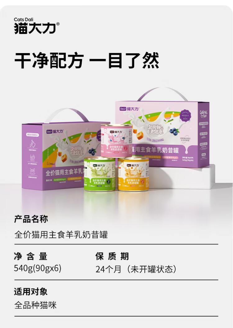 Mao Dali canned cat snacks, nutritional weight gain, goat milk shake, full price cat staple food cans 90g*6 cans