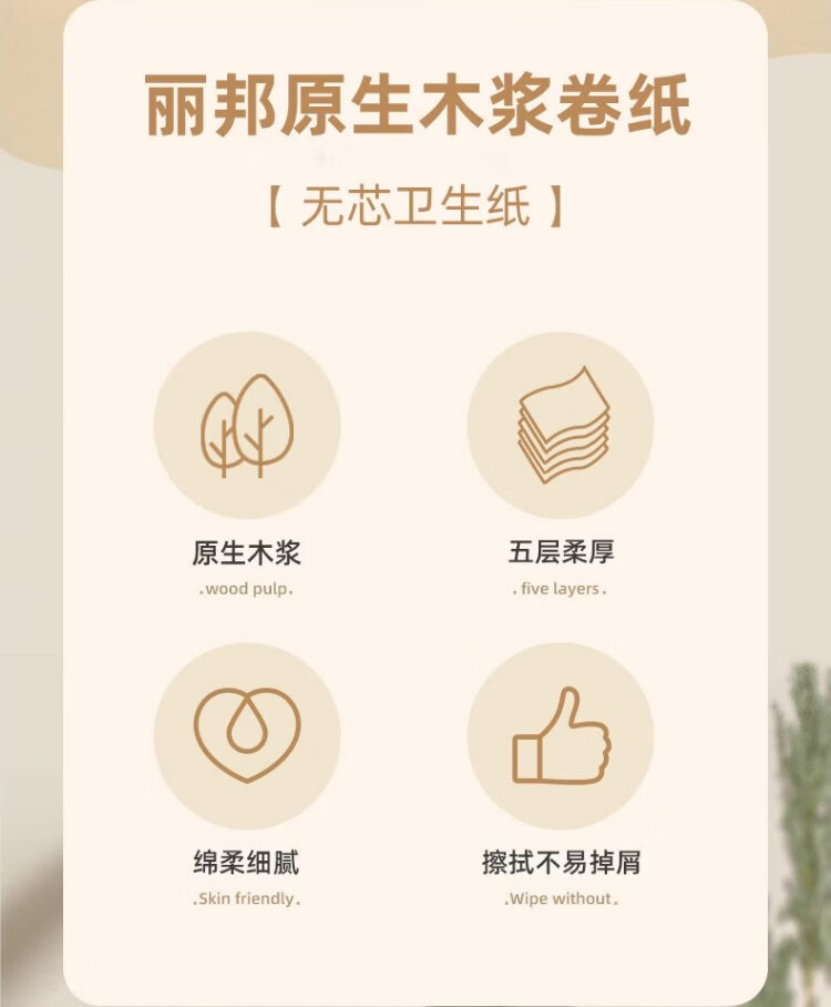 Libang coreless roll paper 5 layers 2500g 18 rolls toilet paper toilet paper puree soft and thick large long solid household