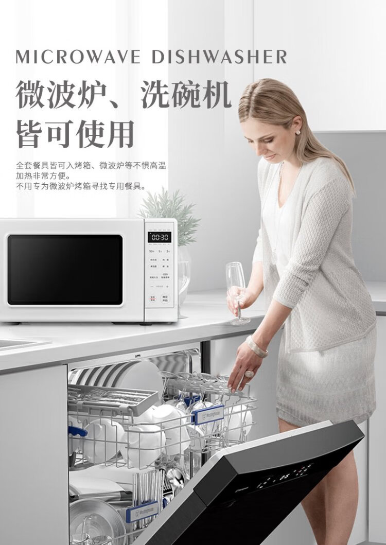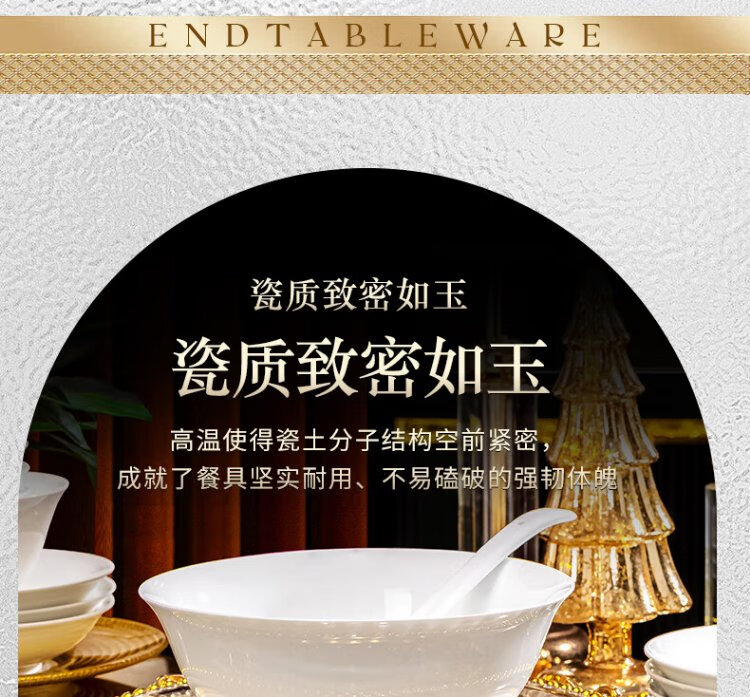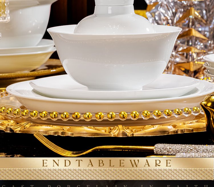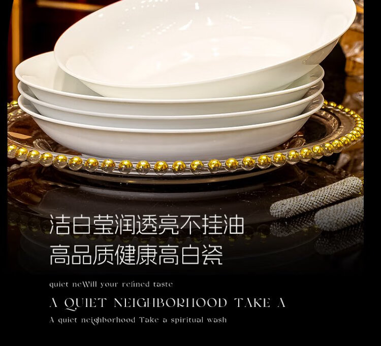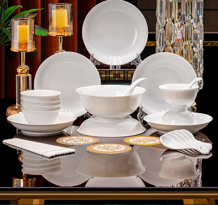 Tao Xianghui Jingdezhen high white porcelain tableware set underglaze color household 32-head pure white bowls, plates and spoons complete set of dishes as a housewarming gift