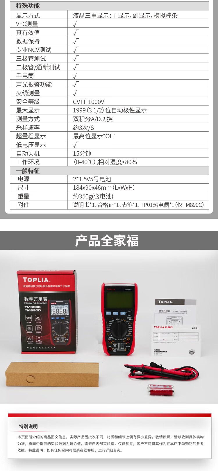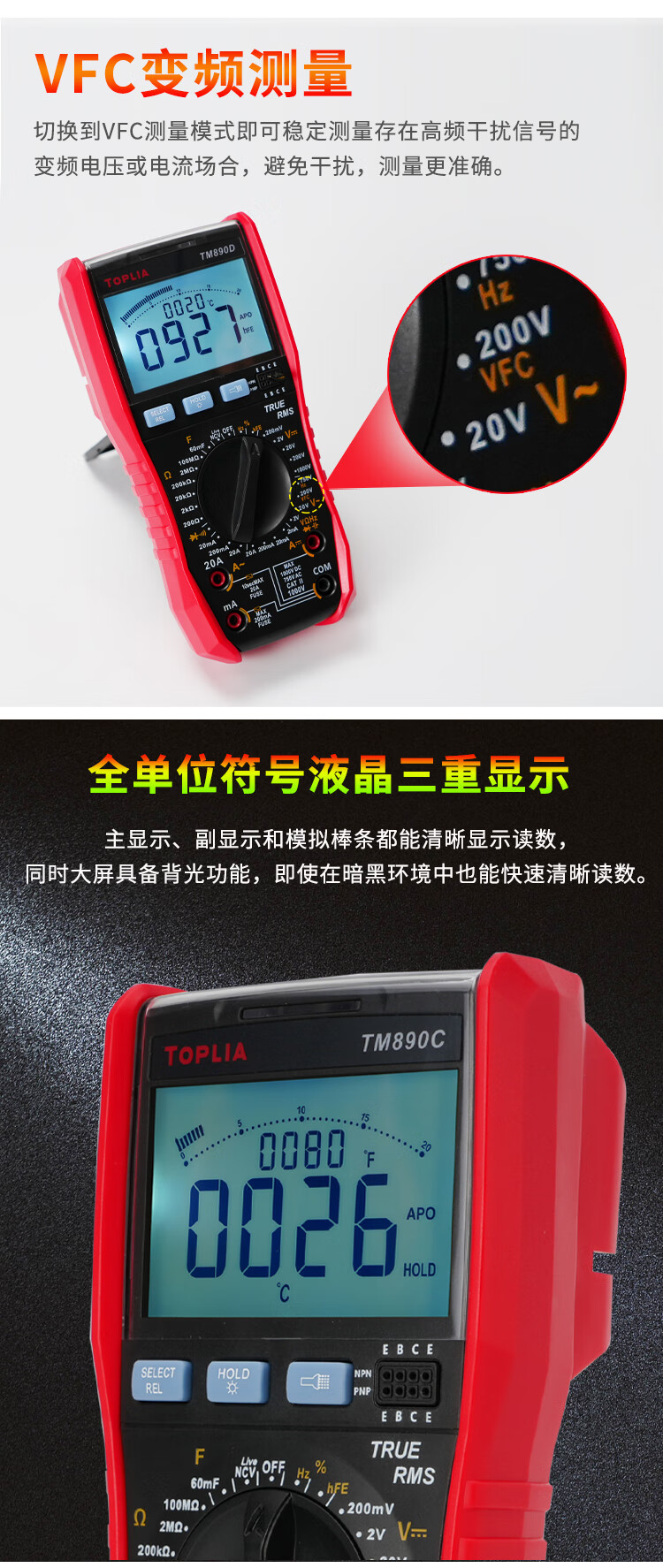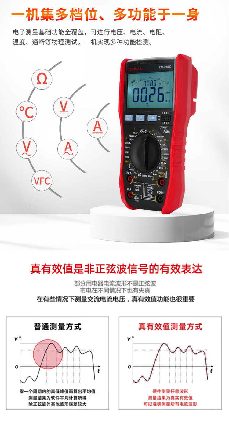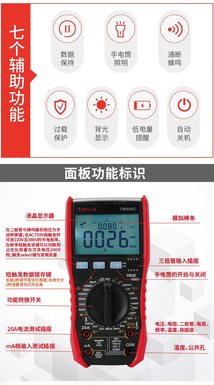 Toplia (TOPLIA) Excellent digital multimeter multimeter electrician meter household multi-function ammeter NCV test TM890C