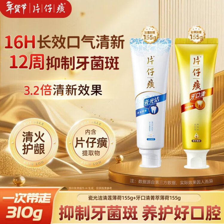 Pien Tze Huang Toothpaste Inhibits Dental Plaque, Freshens Breath, Teeth Luster, Qinglian 155g + Essence 155g