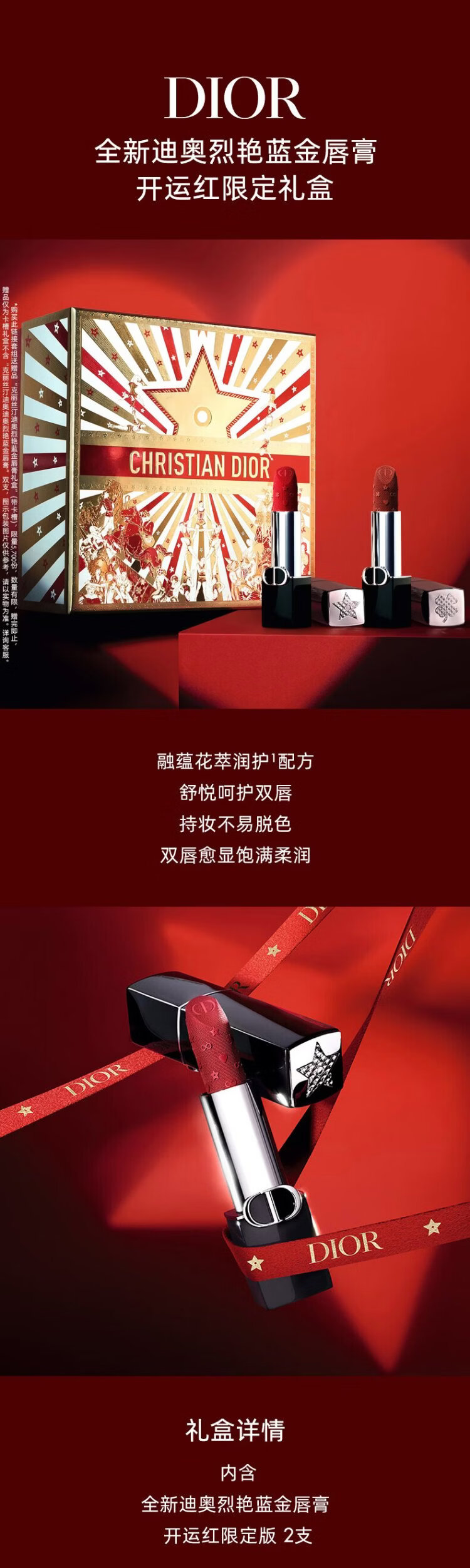 Dior DIOR Vibrant Blue Gold Lipstick Double Gift Box Velvet (808+806) Set Birthday Gift New Year Gift for Women