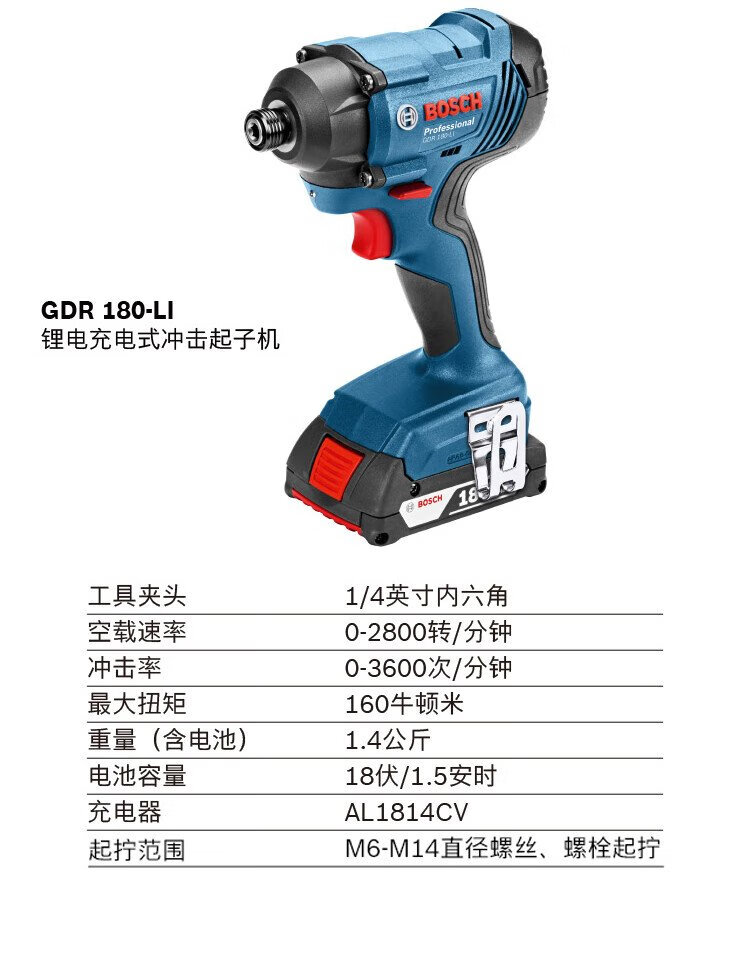 Bosch (BOSCH) GDR 180-LI lithium battery 18V rechargeable impact driver/electric wrench impact wrench dual-electric version (two batteries)
