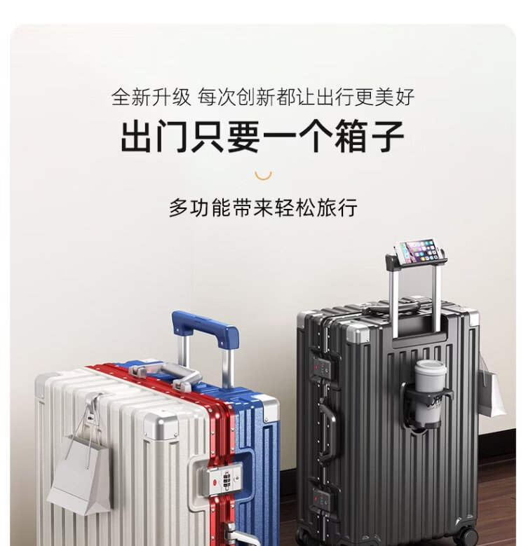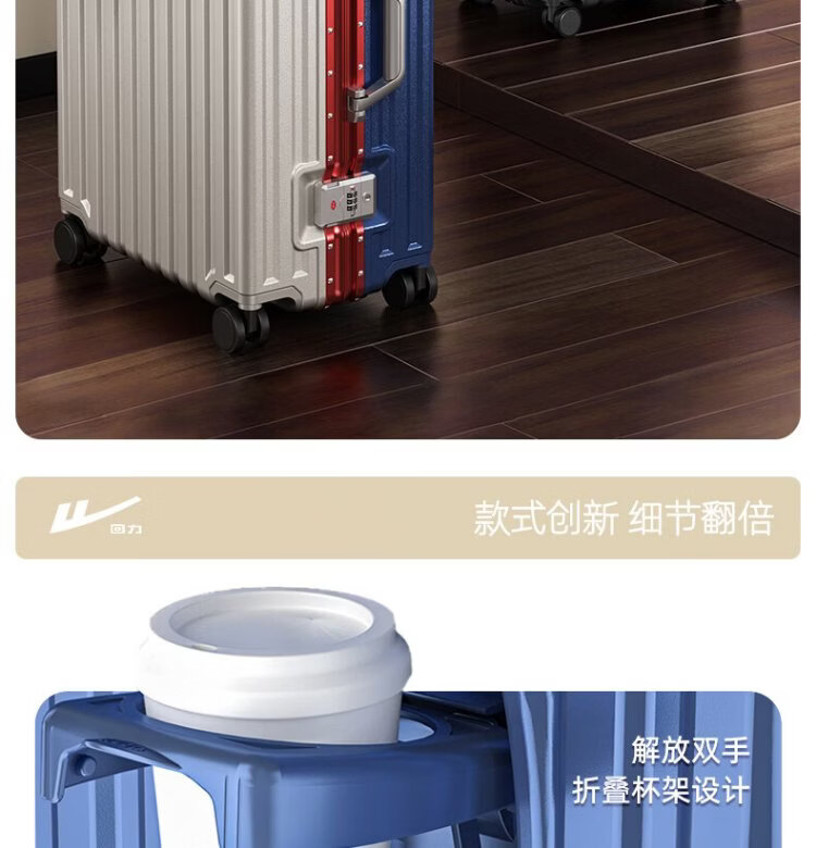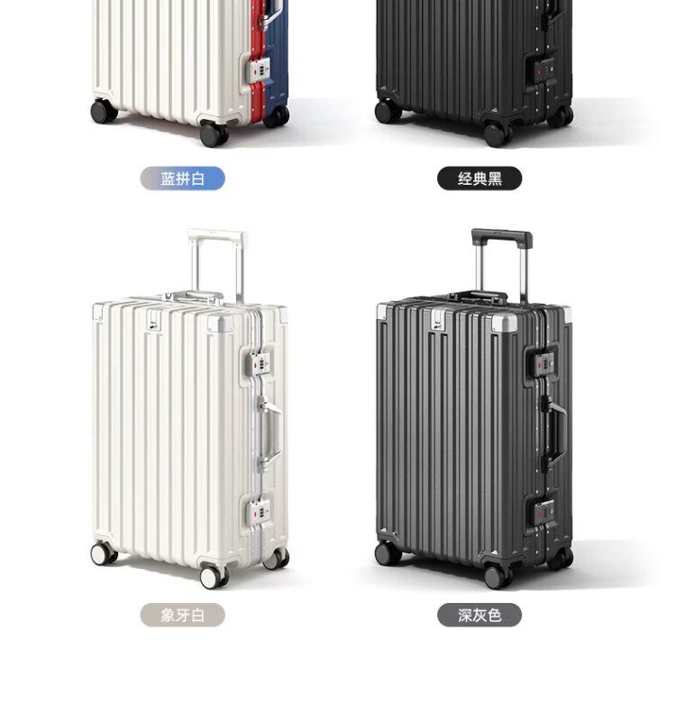 Pull back suitcase aluminum frame trolley case large capacity men's and women's suitcase password box sturdy leather case color matching 26 inches