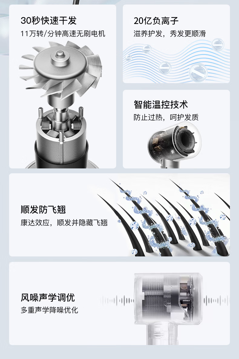 Dianxiaocheng bladeless high-speed hair dryer with 2 billion negative ions for home use, silent, high-power, non-harming hair + hair clipper set