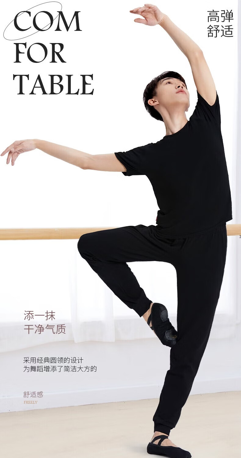 Aiwu Ge dance pants art test body suit boys suit modern dance black top adult dance suit practice suit L