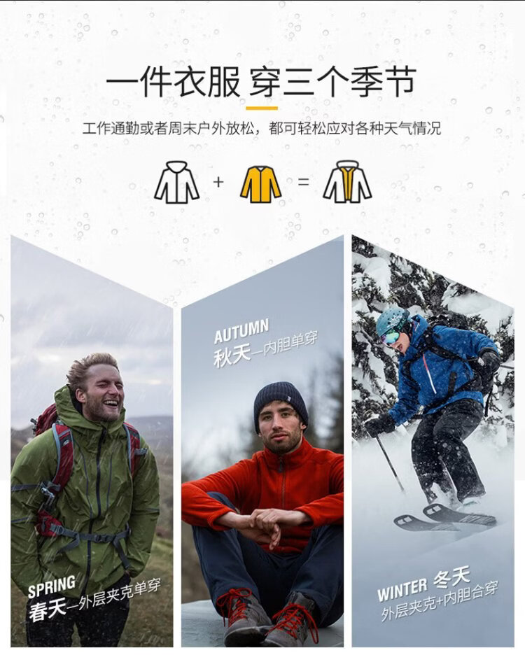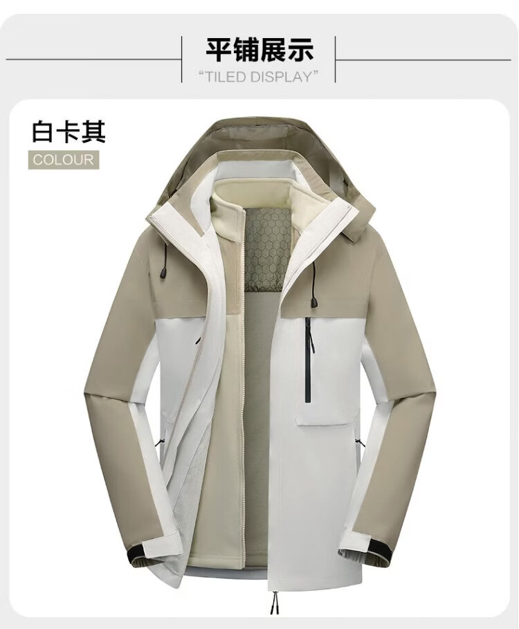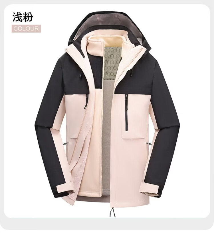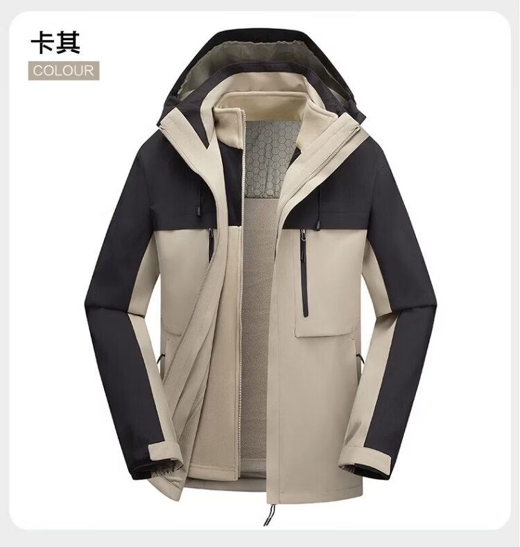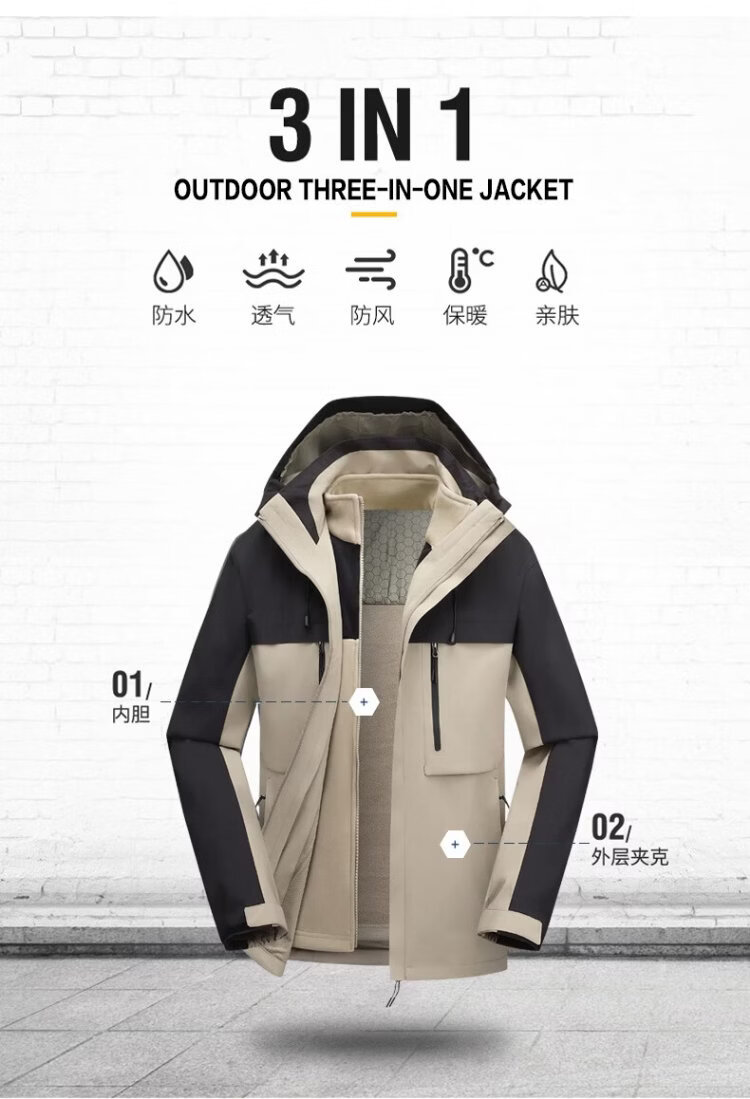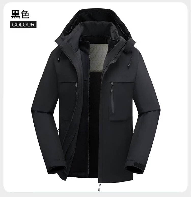 Jeanswest outdoor sports casual jacket men's winter fashion cold-proof and warm three-in-one outdoor sports cold-proof two-piece set black L