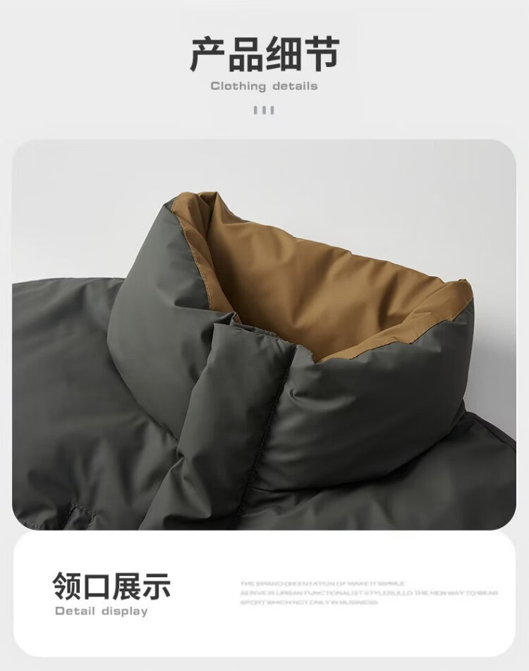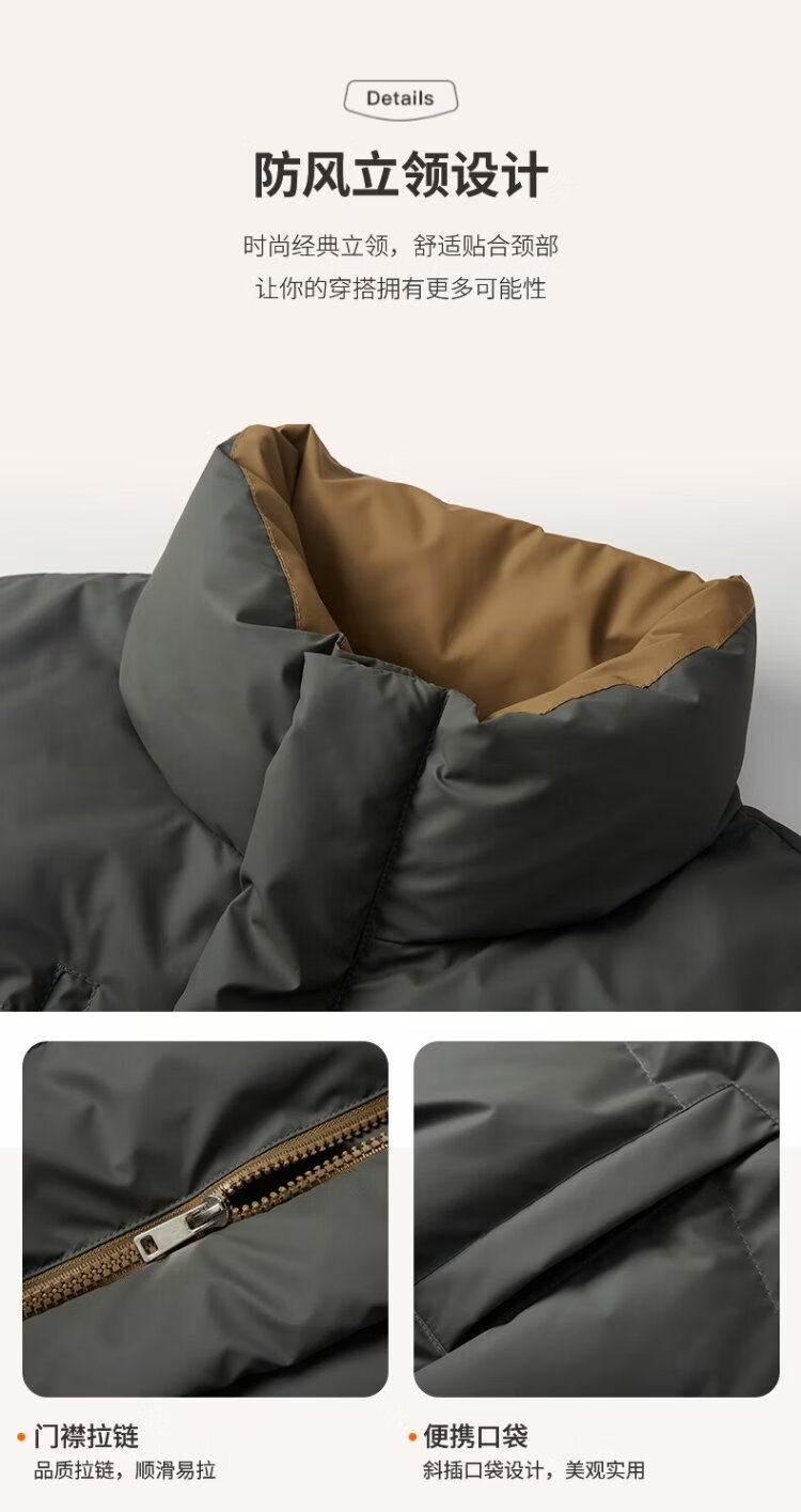 NASA MARVEL down jacket men's winter outdoor sports and leisure all-match windproof and warm stand-up collar jacket dark gray XL