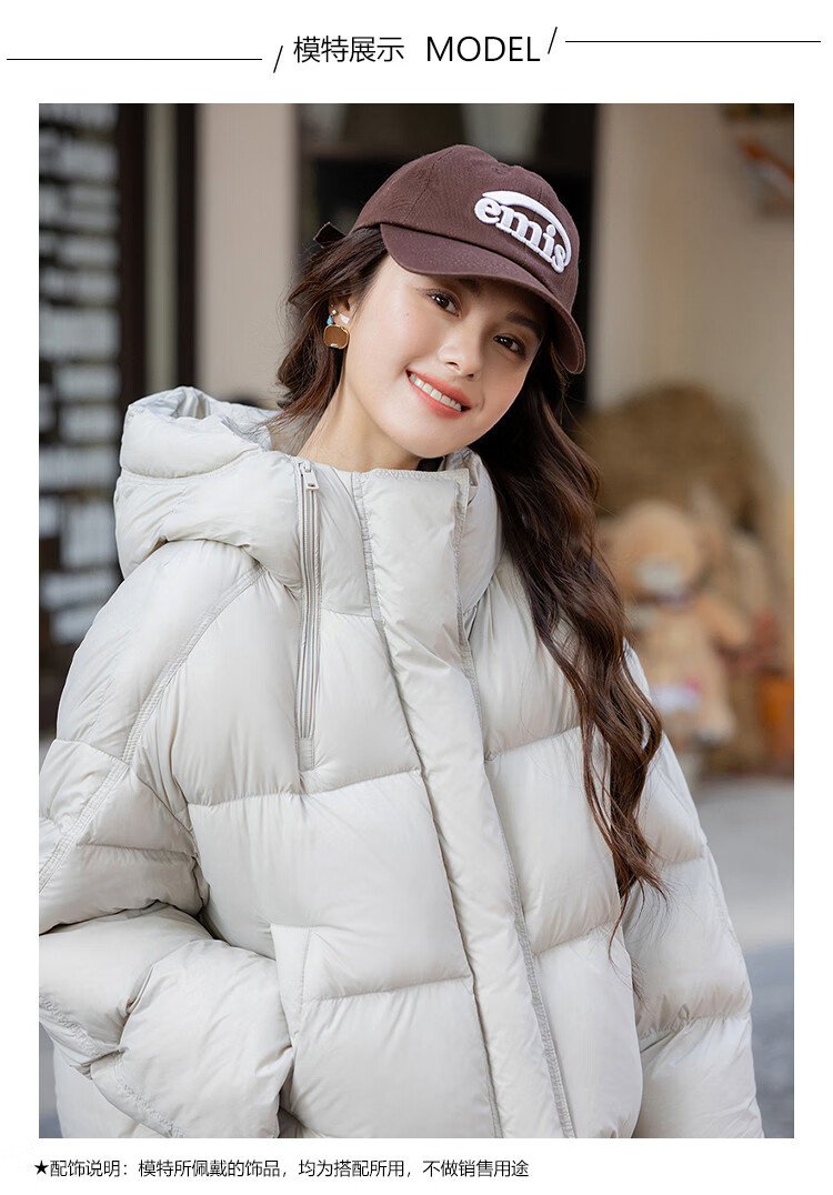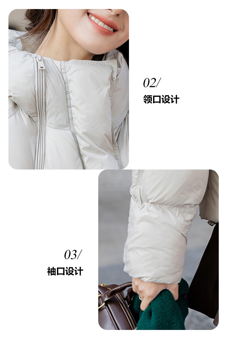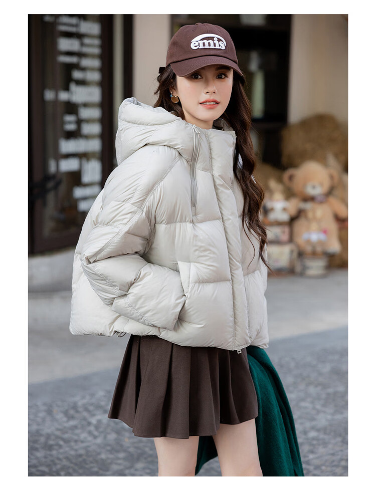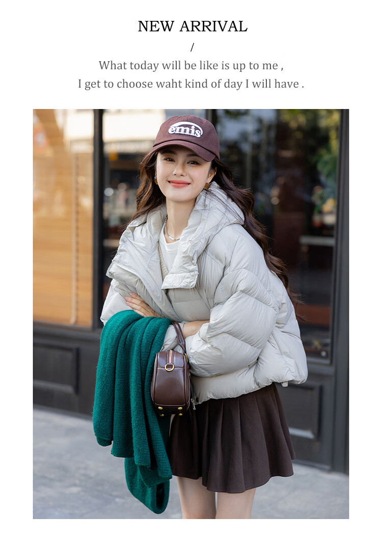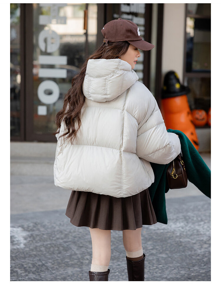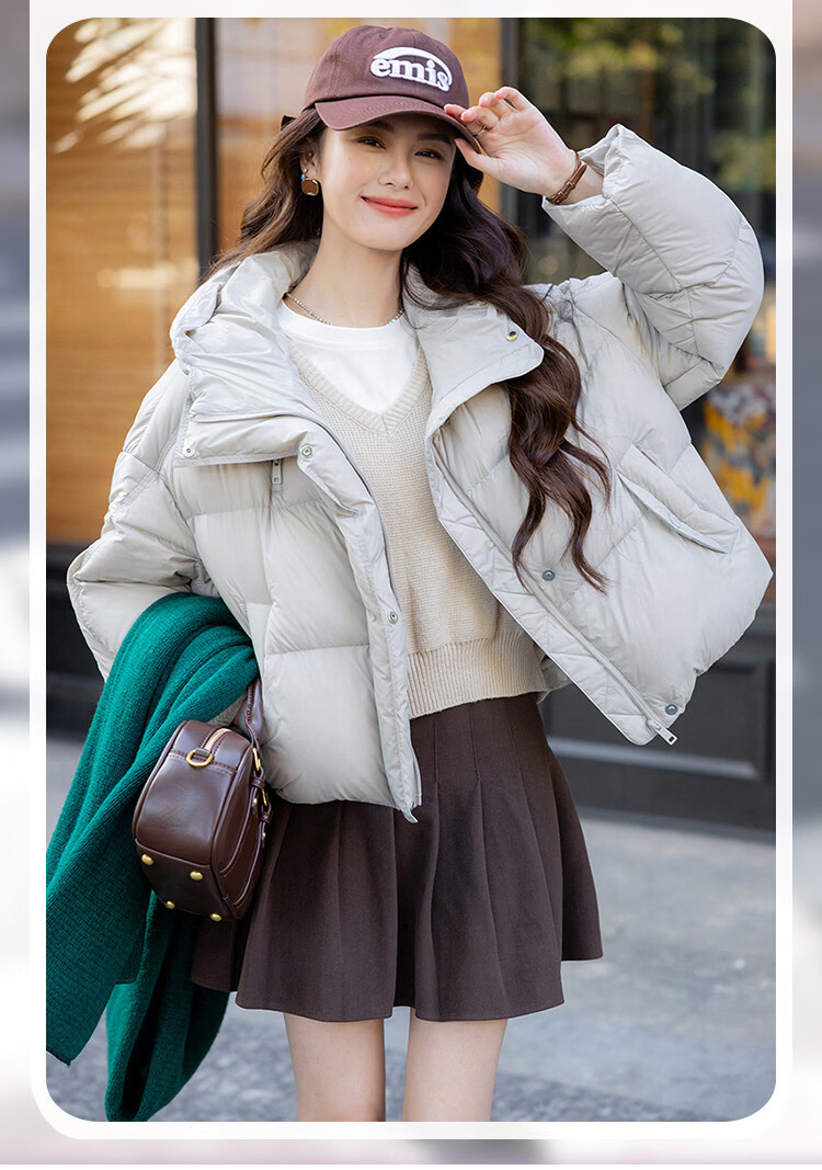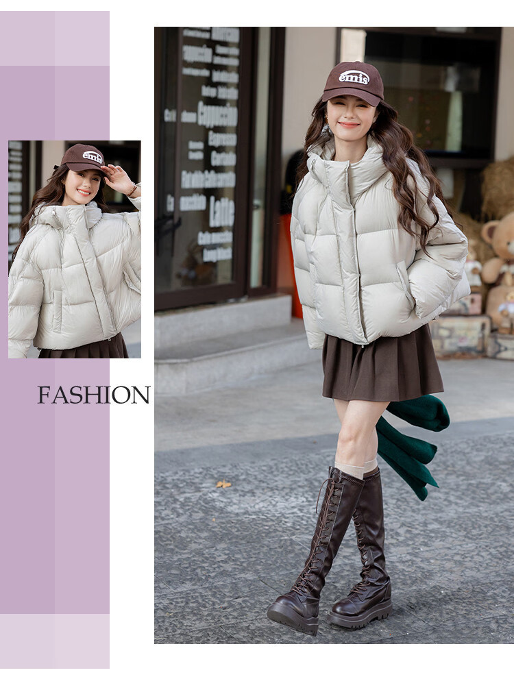 Ives (ITISF4) Light Warm Puff Fashion Down Jacket Winter Fashion Hooded Short Turtle Back Down Jacket Beige S
