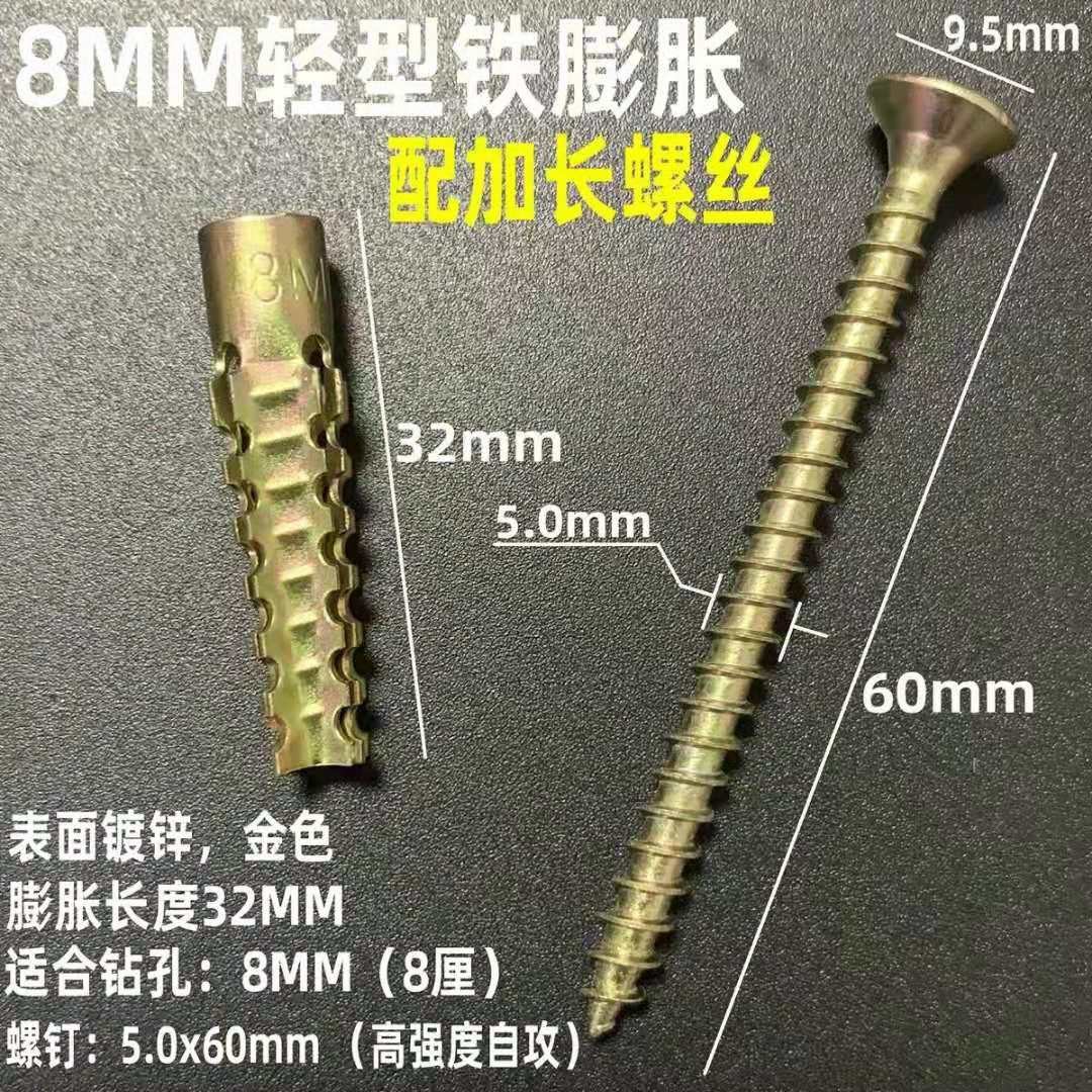 Shijun plastic expansion pipe nail expansion plug upgraded version lightweight iron expansion screw lightweight brick wall expansion 8mm iron expansion pipe + screws 100 pieces